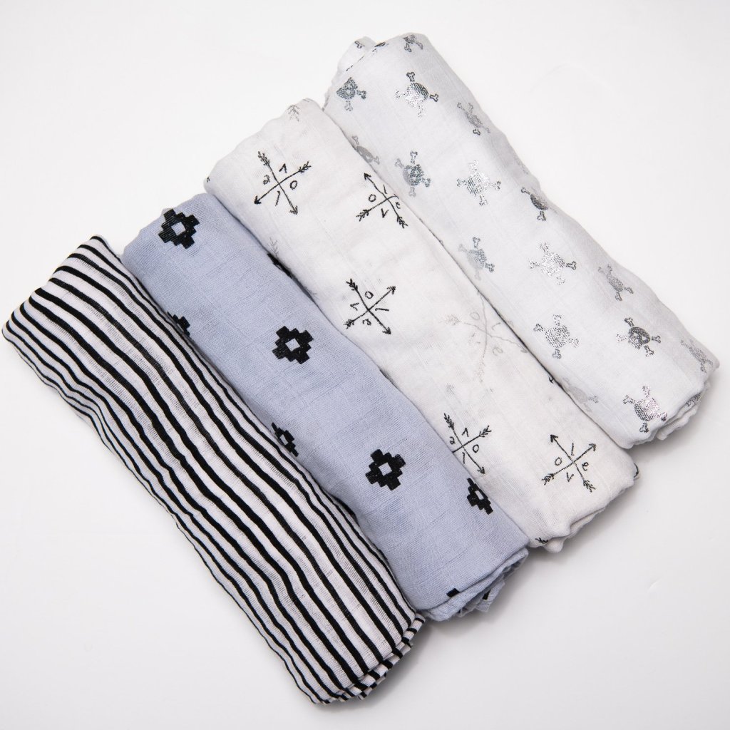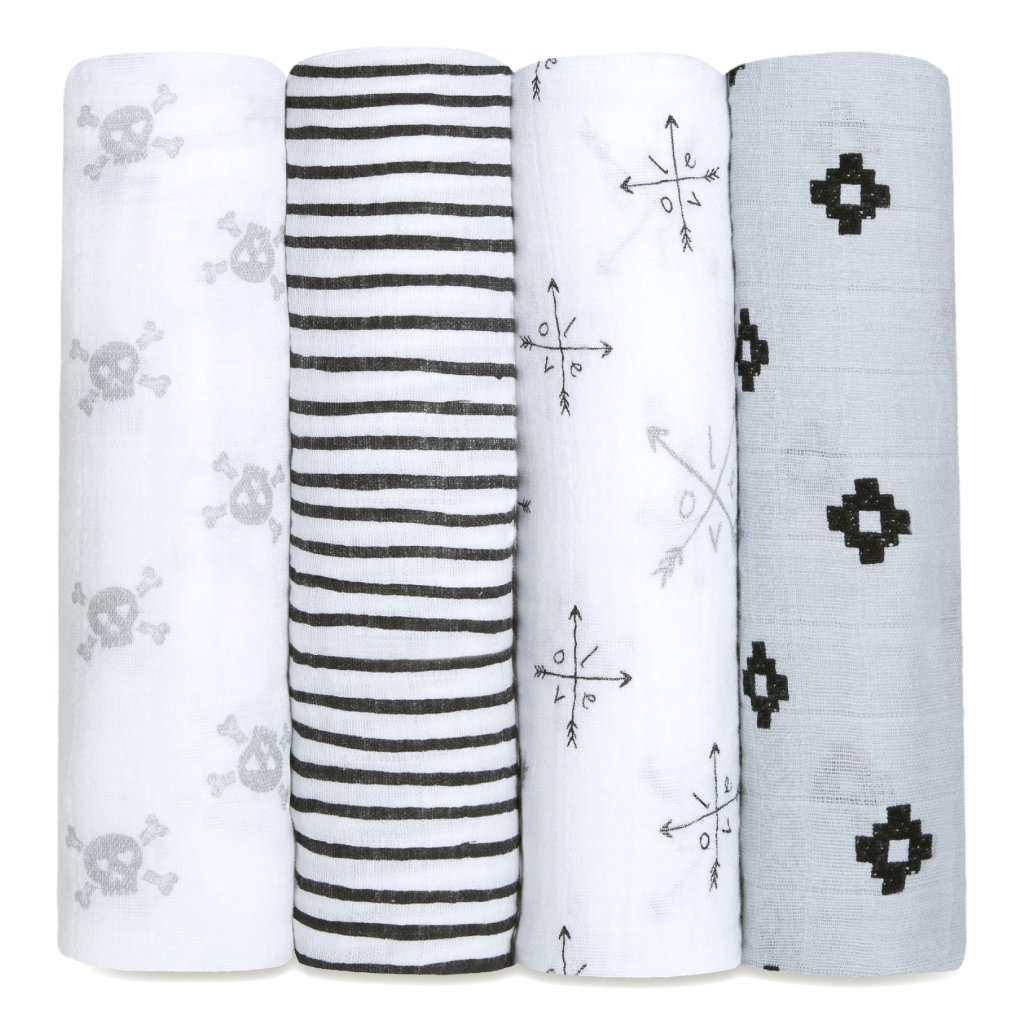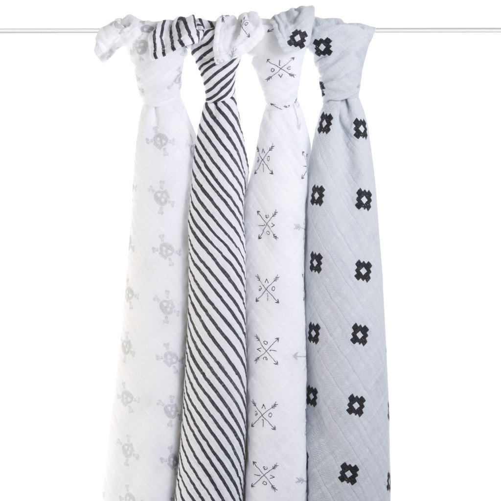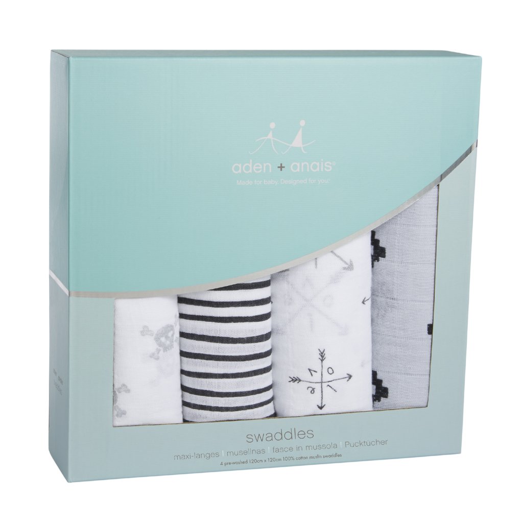 Balenie obsahuje 4 plienky Aden + Anais® vyrobené zo 100% bavlny. Neuveriteľne jemné a mäkké. Zabalené v darčekovej krabičke.