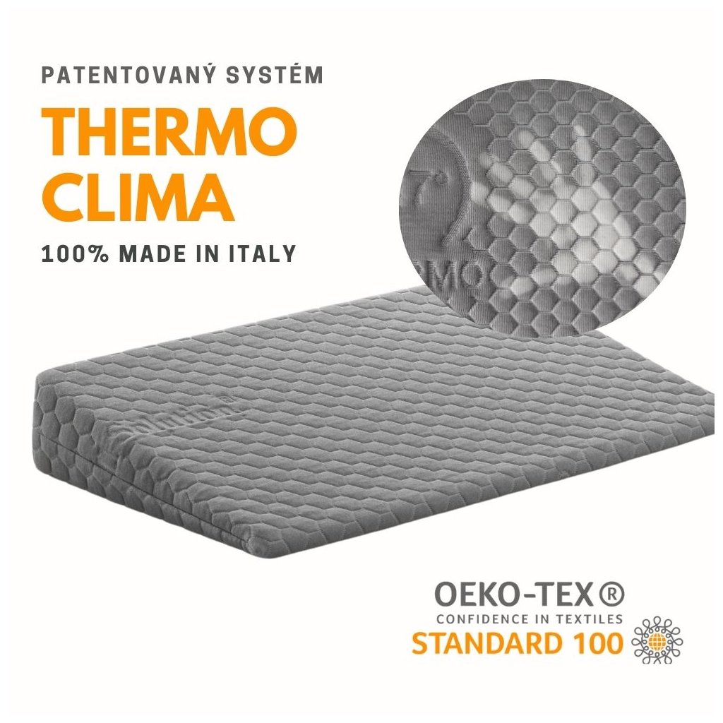 Systém ThermoClima aktívne prispôsobuje teplotu tela, čím zabezpečuje ideálne podmienky na spánok. Táto technológia zabraňuje prehriatiu dieťaťa v teplých mesiacoch a zároveň poskytuje dostatočné teplo počas chladných nocí.