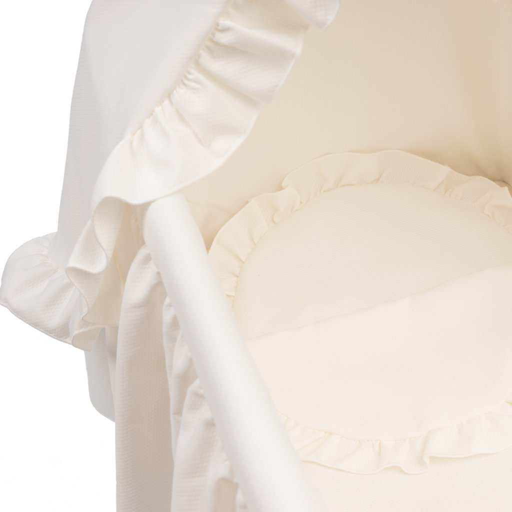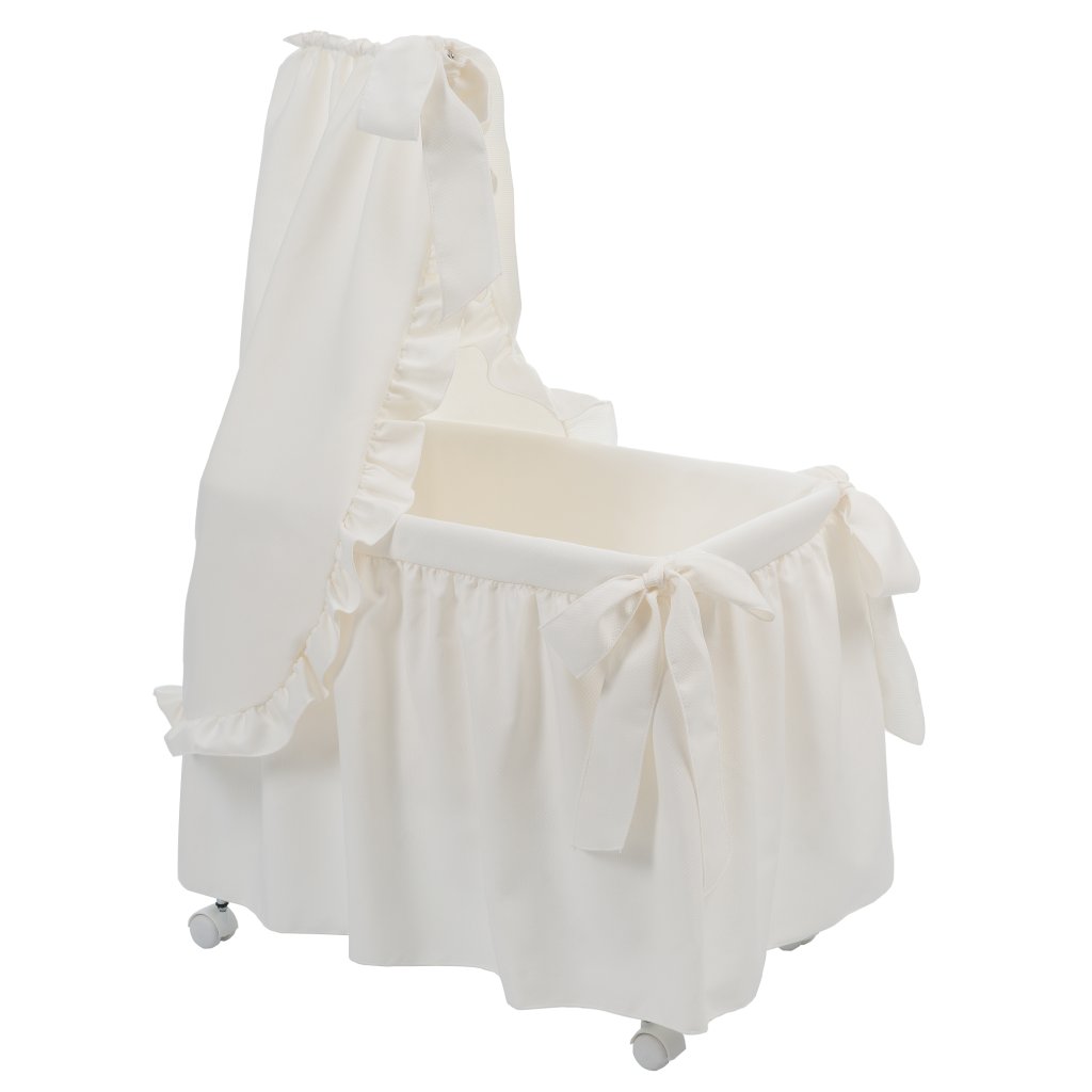 Béžová kolíska s baldachýnom pre bábiky je tým najkrajším darčekom pre každú malú princeznú a jej bábiku. Pri výrobe sú používané vysokokvalitné luxusné materiály a zároveň ručná práca s detailným spracovaním je zárukou kvality, výroba 100% v Španielsku.