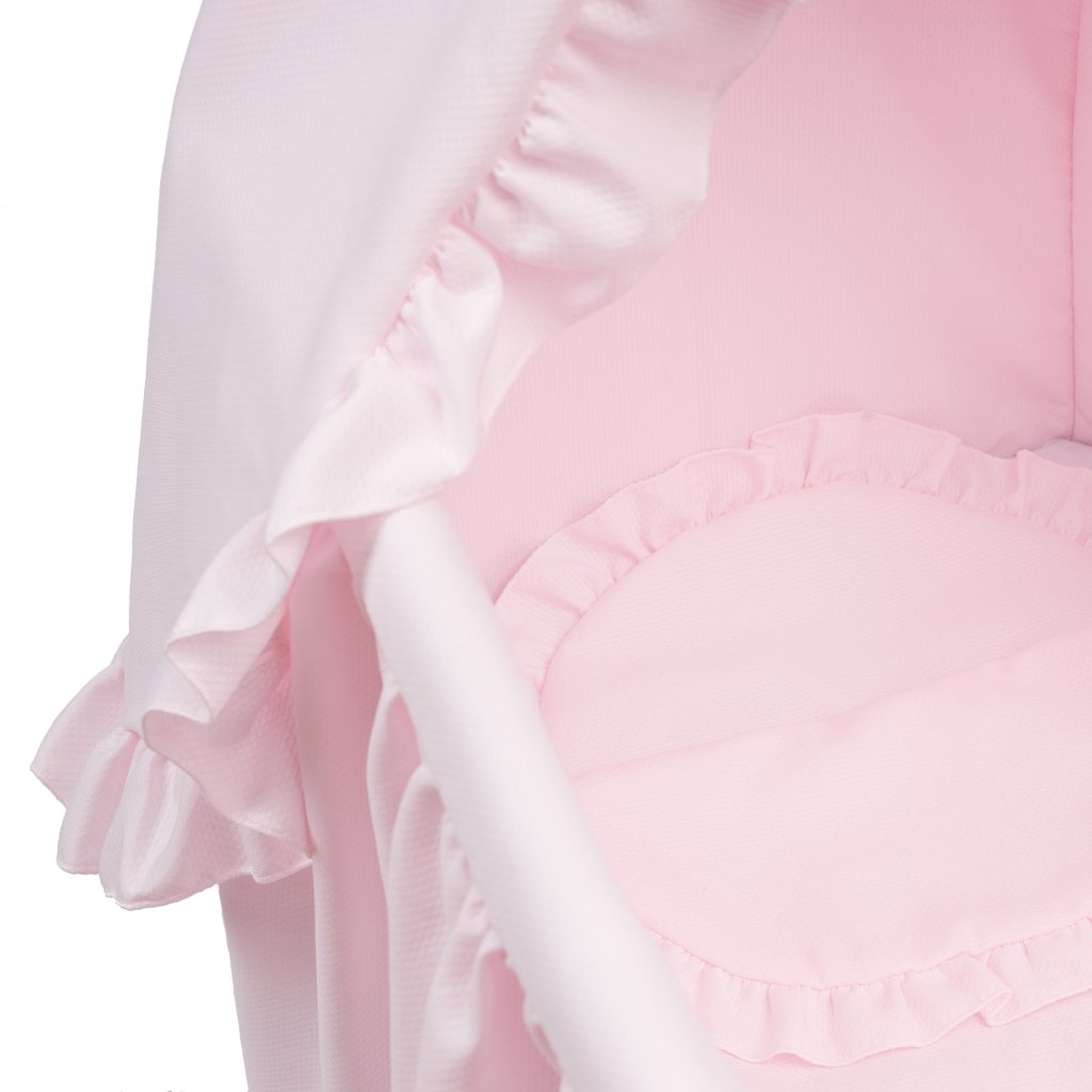 Ružová kolíska s baldachýnom pre bábiky je tým najkrajším darčekom pre každú malú princeznú a jej bábiku. Pri výrobe sú používané vysokokvalitné luxusné materiály a zároveň ručná práca s detailným spracovaním je zárukou kvality, výroba 100% v Španielsku.