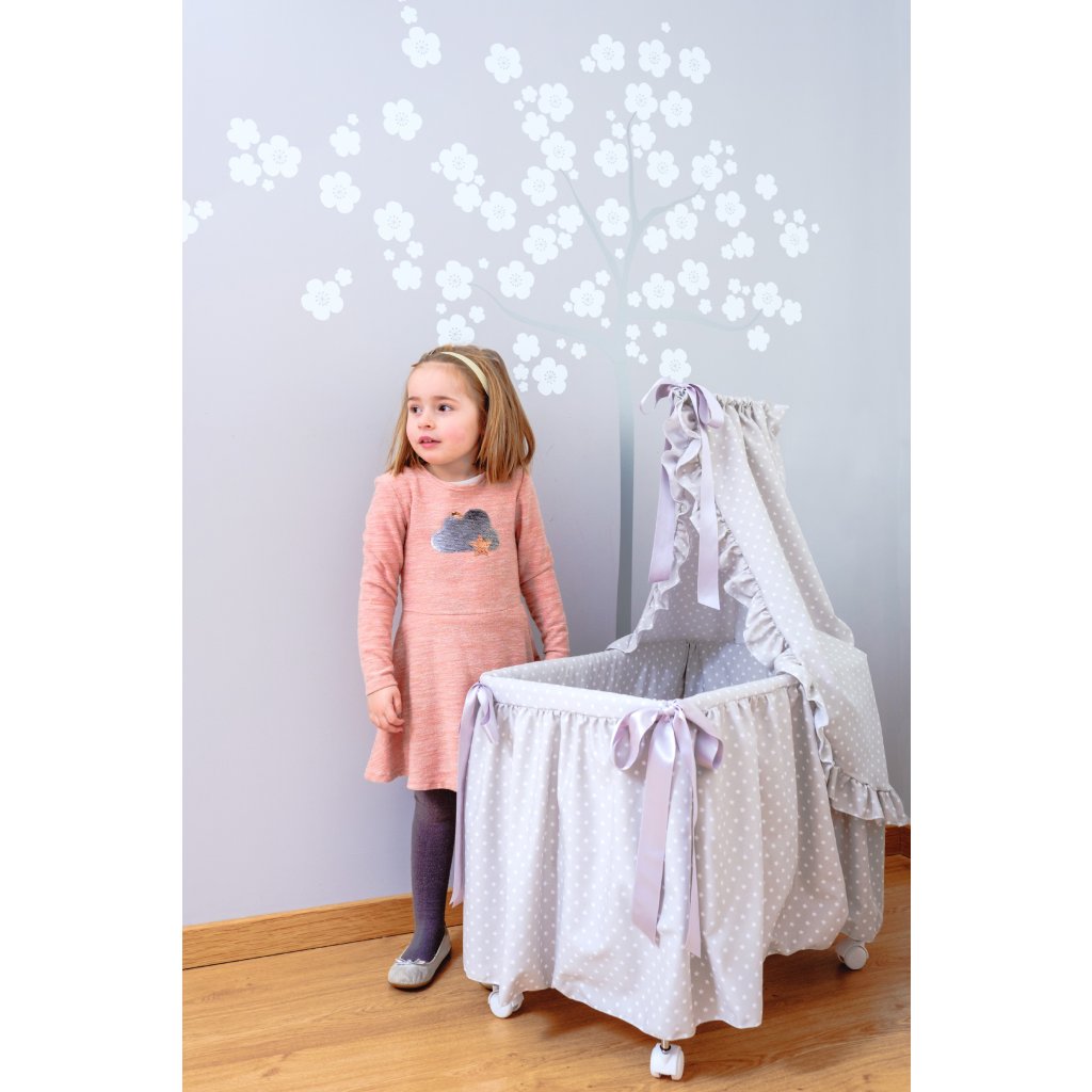 Ružová kolíska s baldachýnom pre bábiky je tým najkrajším darčekom pre každú malú princeznú a jej bábiku. Pri výrobe sú používané vysokokvalitné luxusné materiály a zároveň ručná práca s detailným spracovaním je zárukou kvality, výroba 100% v Španielsku.