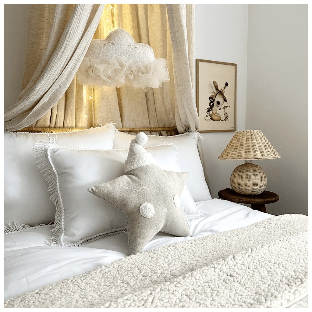 Prírodný ľanový hviezdičkový vankúš na spanie okamžite zmení interiér a upúta pozornosť svojím neobvyklým dizajnom. Rozprávková atmosféra v detskej izbe zaručená!
