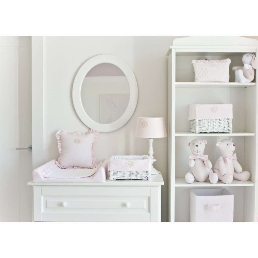 Krásna a funkčná kozmetická taštička. Táto malá toaletná taška je ideálna na prenášanie všetkých detských hygienických produktov. Je vyrobená z prešívanej ružovej textílie a vybavená zipsom a rozkošným volánom.