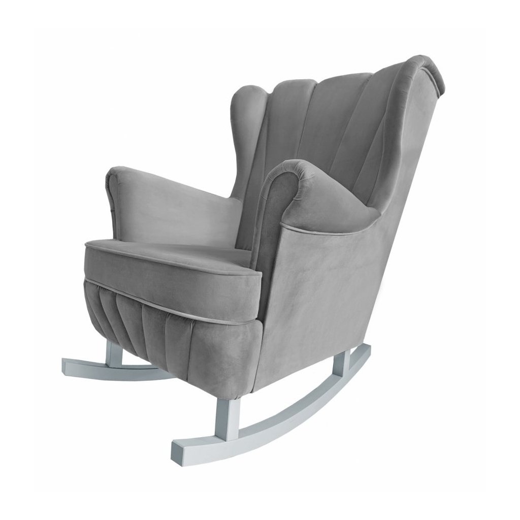 Veľké, veľmi pohodlné hojdacie kreslo. 'Ušatý' typ so širokou chrbtovou opierkou v tvare mušle. Je vyrobený z kvalitného prateľného textilu v sivej farbe. Kreslo je ideálne pre dojčiace mamičky kvôli vysokému operadlu, "uškám" pod hlavou a podrúčkam. Hojdanie bábätko upokojí a umožní mu rýchlejšie zaspať. Obohatí každý interiér - detskú izbu, obývačku a iné.