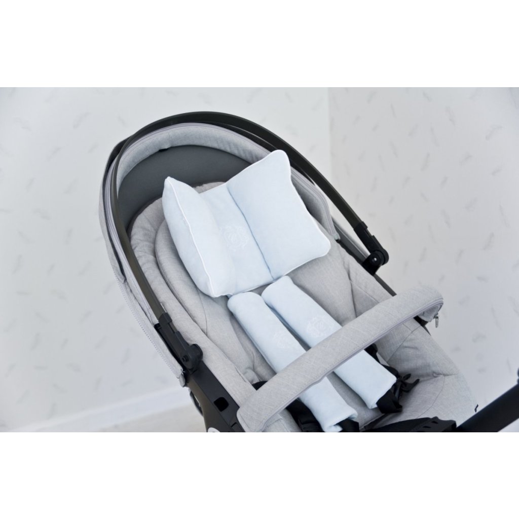 Chrániče bezpečnostných pásov chránia vaše dieťa pred odreninami. Sú vyrobené z jemného velúru a zdobené elegantným emblémom. Dokonale sa hodia ku každému typu kočíka a autosedačky. Odporúčame dokúpiť podhlavník.