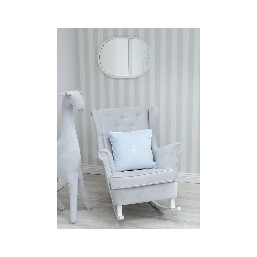 Rozkošné vankúšiky z jemného plyšového velúru v bledomodrej farbe. Zdobené elegantným trojrozmerným znakom v bielej farbe. Budú skvelou dekoráciou v chlapčenskej izbičke. Súčasťou vankúšika je obliečka na vankúš s výplňou. Dostupný v dvoch rozmeroch.