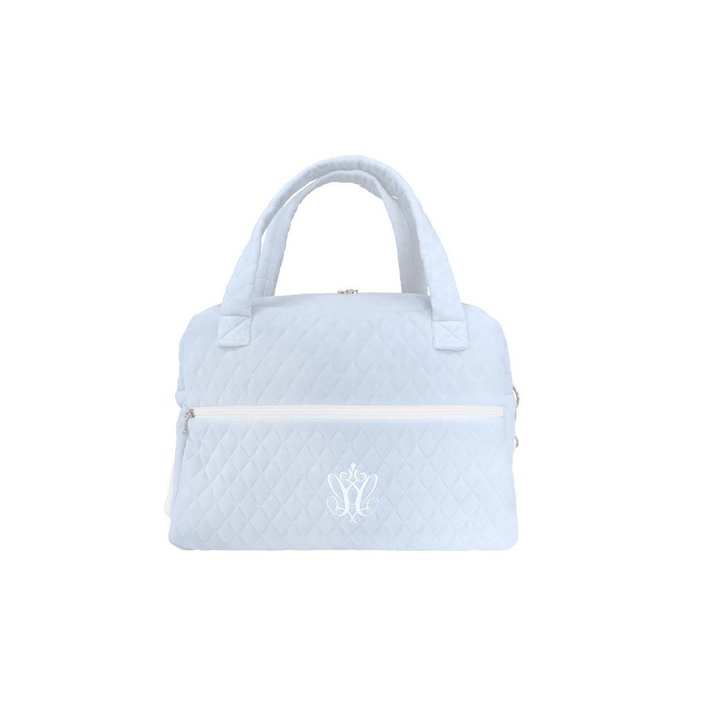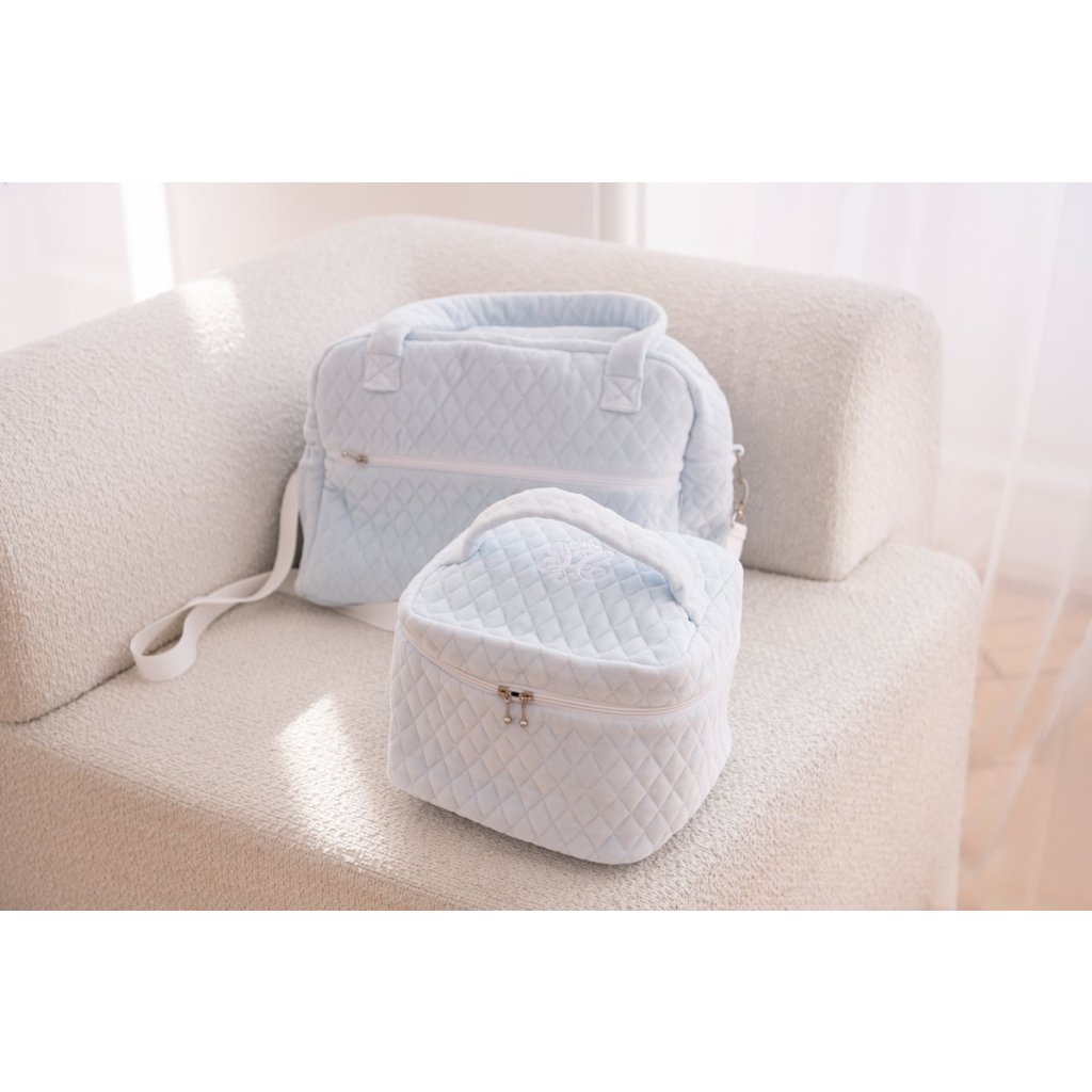 Štýlová a veľmi funkčná taška, do ktorej sa zmestia všetky detské doplnky. Vybavená praktickými vreckami a prídavným dlhým nastaviteľným popruhom, uzatvárateľným na zips. Vyrobená z prešívanej bavlny v odtieni modrej.