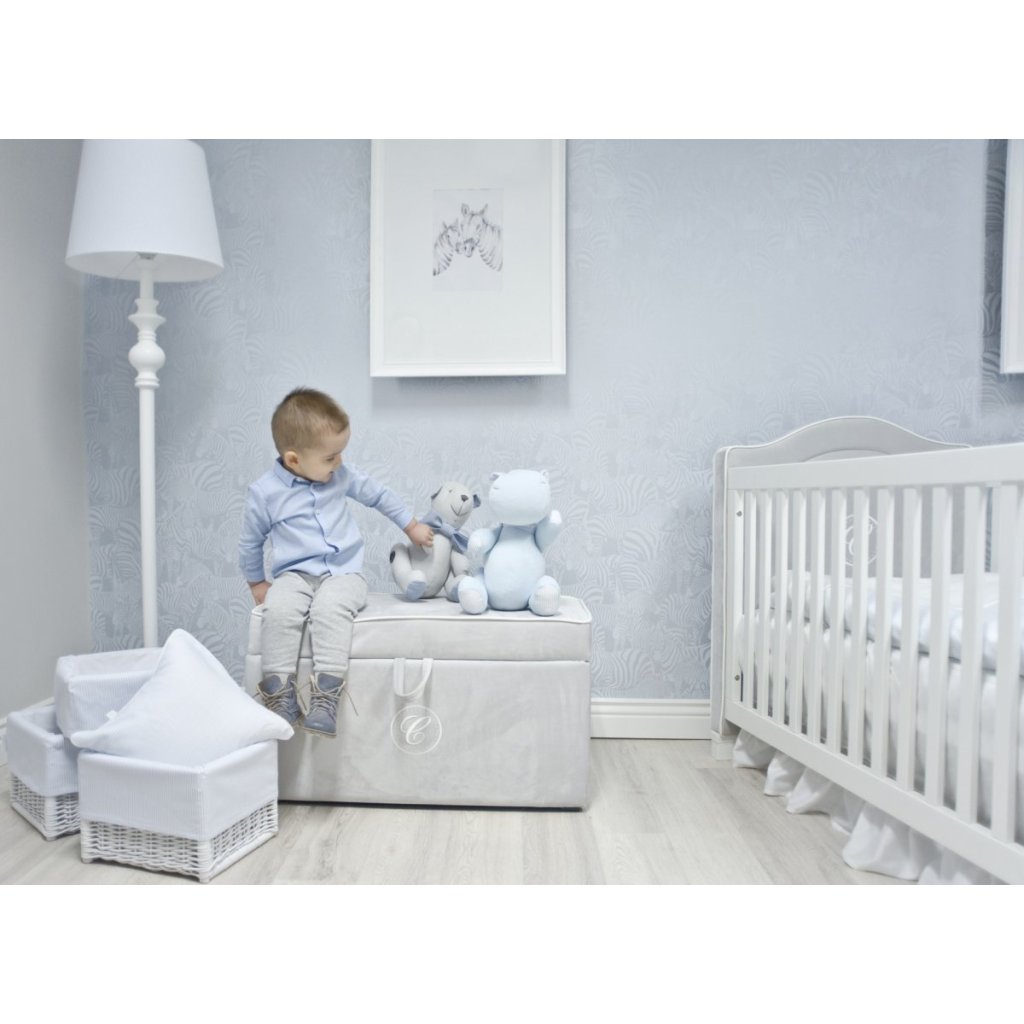 Krásny dizajn pre chlapcov. Stojacia lampa so svetlomodrým tienidlom a ozdobnou nohou. Dokonalé svetlo do každej detskej izby. Táto lampa je ručne vyrábaná a medzi ramenami a hlavným prvkom sú viditeľné spojenia. Vďaka ručnej výrobe je každá lampa jedinečným výrobkom a môže sa od seba líšiť.