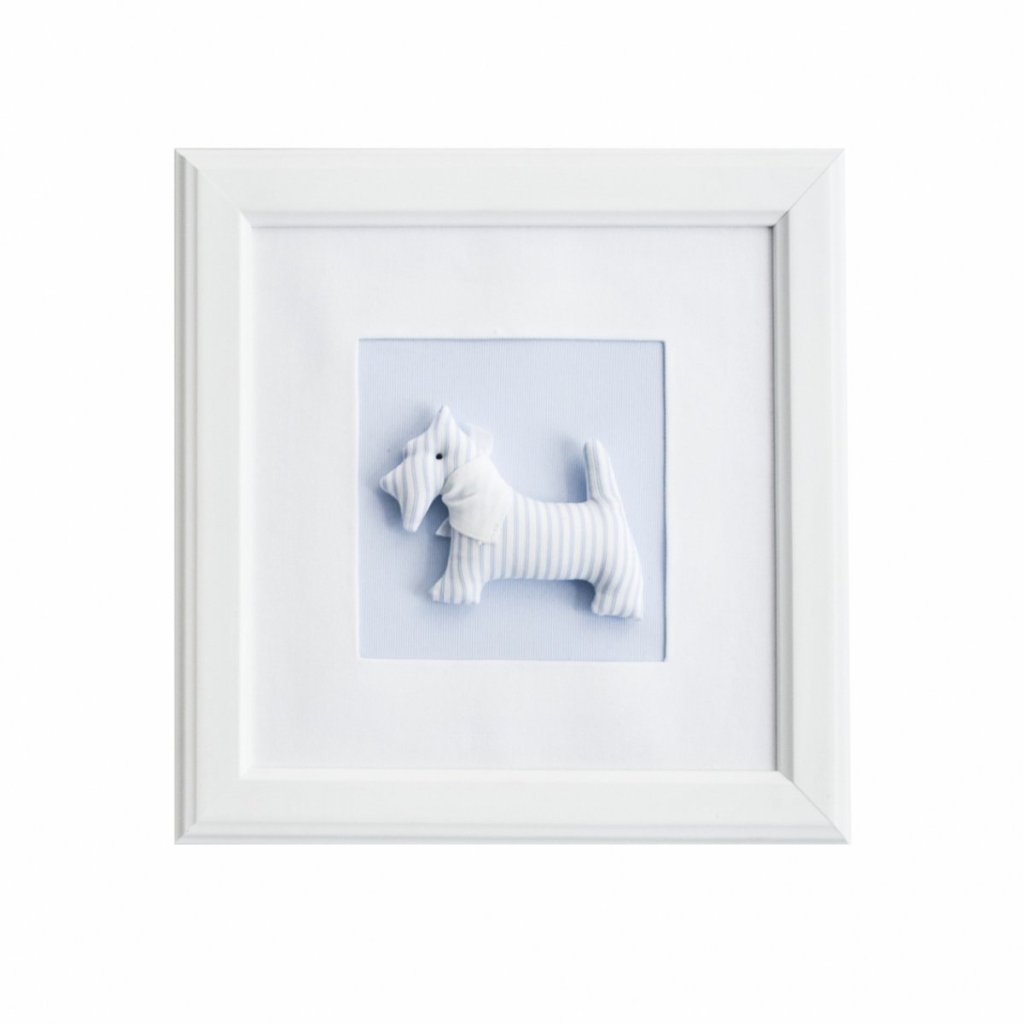 Najobľúbenejší detský miláčik - psík, v azúrovo-bielej farbe. Vnútorná časť obrazu je vyrobená z mäkkého textilu.