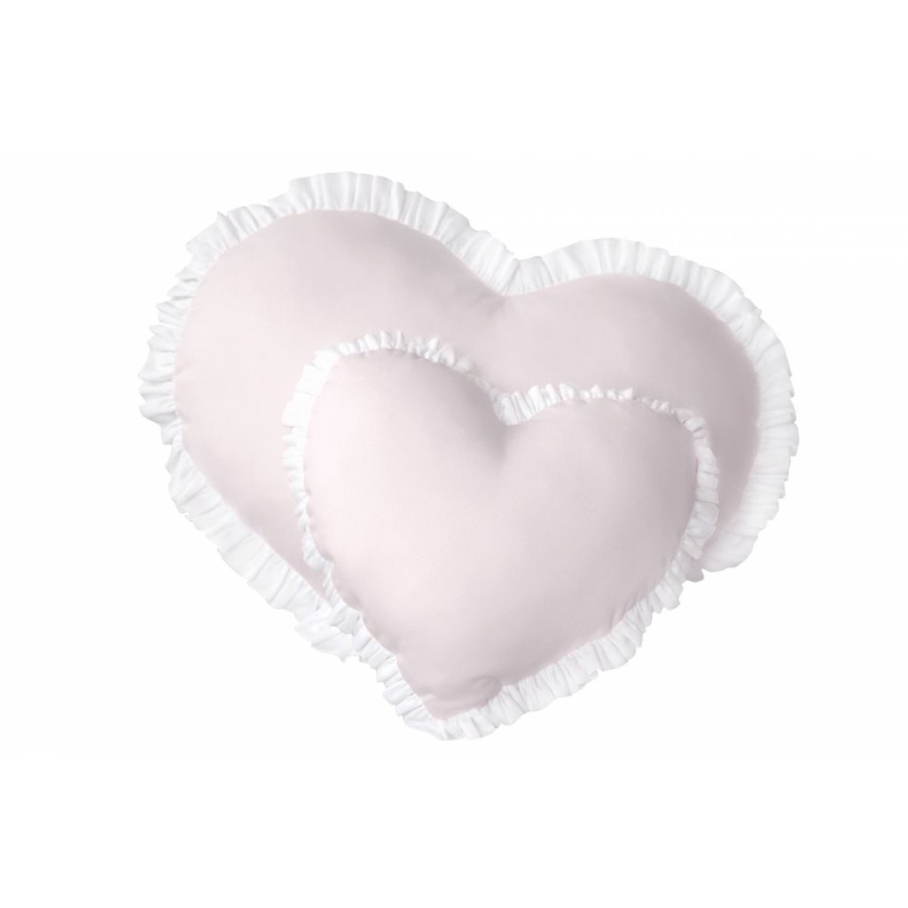 Krásne vankúše v tvare srdca s ozdobným volánom vytvoria vo vašej detskej izbe jedinečnú atmosféru. Dostupné v dvoch veľkostiach. Súčasťou vankúšika je obliečka na vankúš s výplňou.