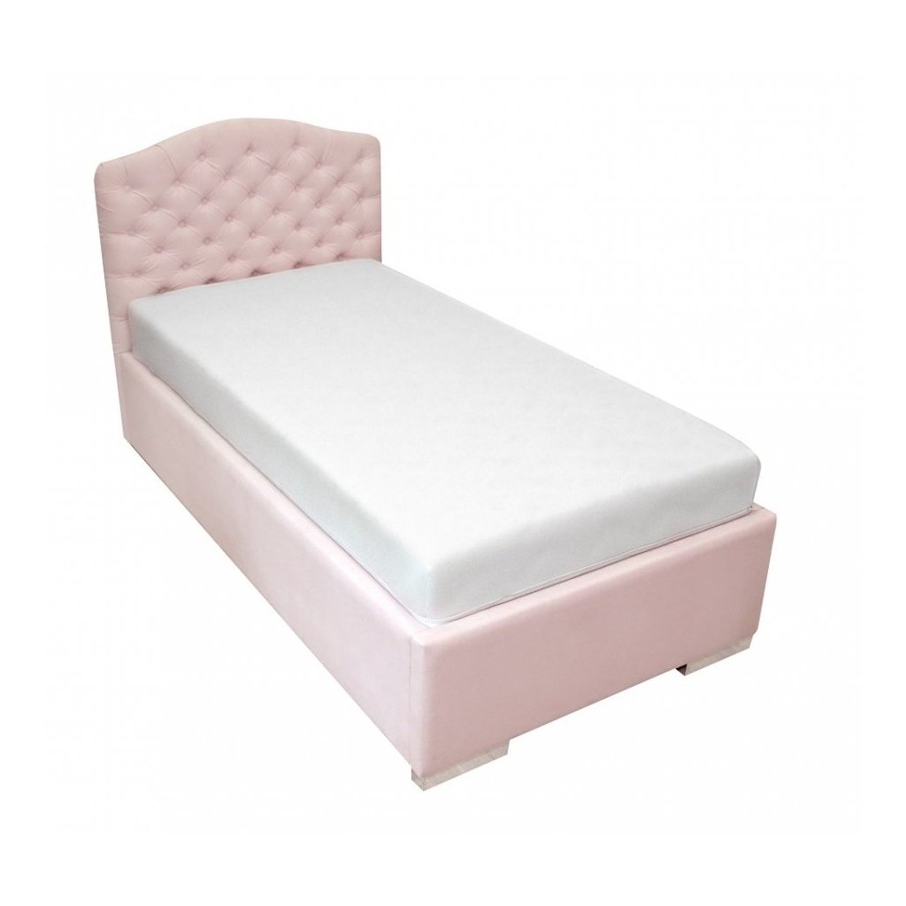 Elegantná detská posteľ s exkluzívnym prešívaným zadným čelom. Čelo postele a rám sú čalúnené kvalitnou umývateľnou textíliou v ružovej farbe, vďaka čomu je nábytok ešte funkčnejší. Posteľ si môžete objednať s úložným priestorom na box, ktorý vám umožní uložiť do postele lôžkoviny. Box je súčasťou postele.