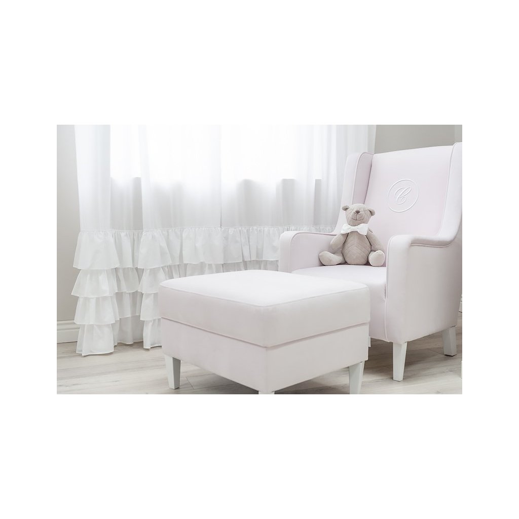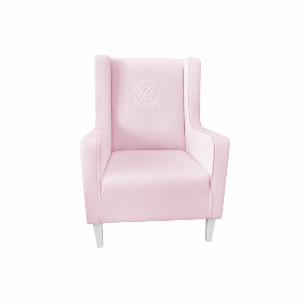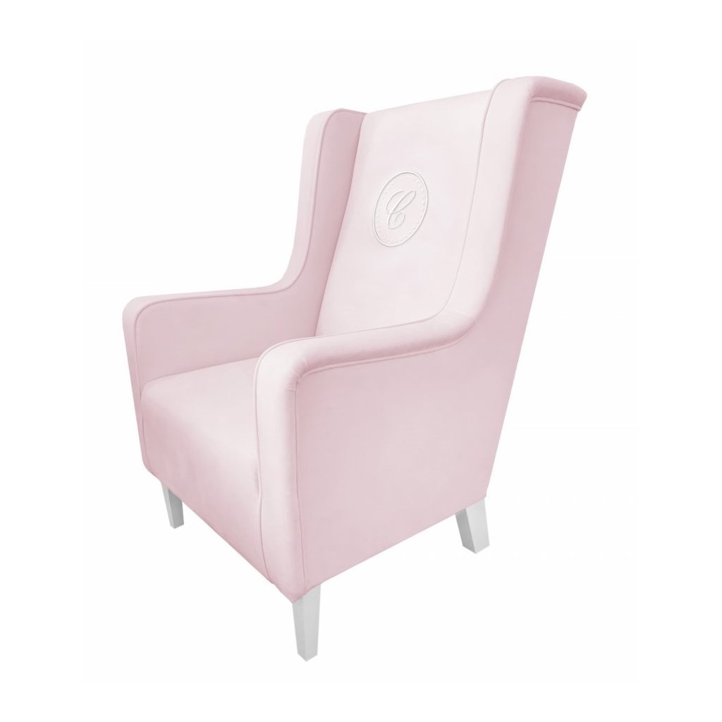 Veľké a veľmi pohodlné moderné kreslo potiahnuté kvalitným umývateľným materiálom v ružovej farbe. Kreslo je zdobené elegantnou bielou dekoráciou a exkluzívnym znakom s písmenom „C“ v bielej farbe. Toto kreslo ocení každá dojčiaca mamička vzhľadom na vysoké opierky na hlavu a lakťové opierky. Kreslo zapadá do každého interiéru - detskej izby, obývacej izby, spálne a ďalších.