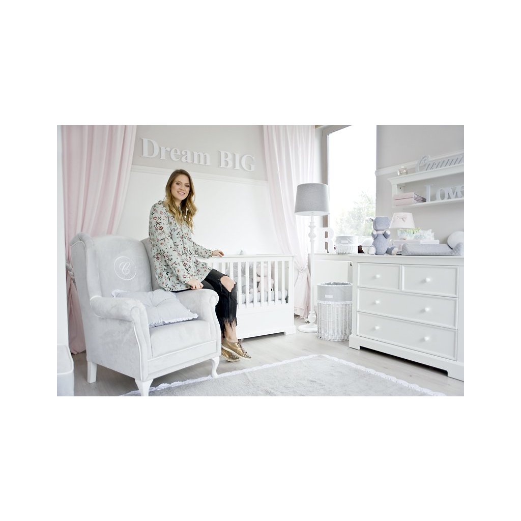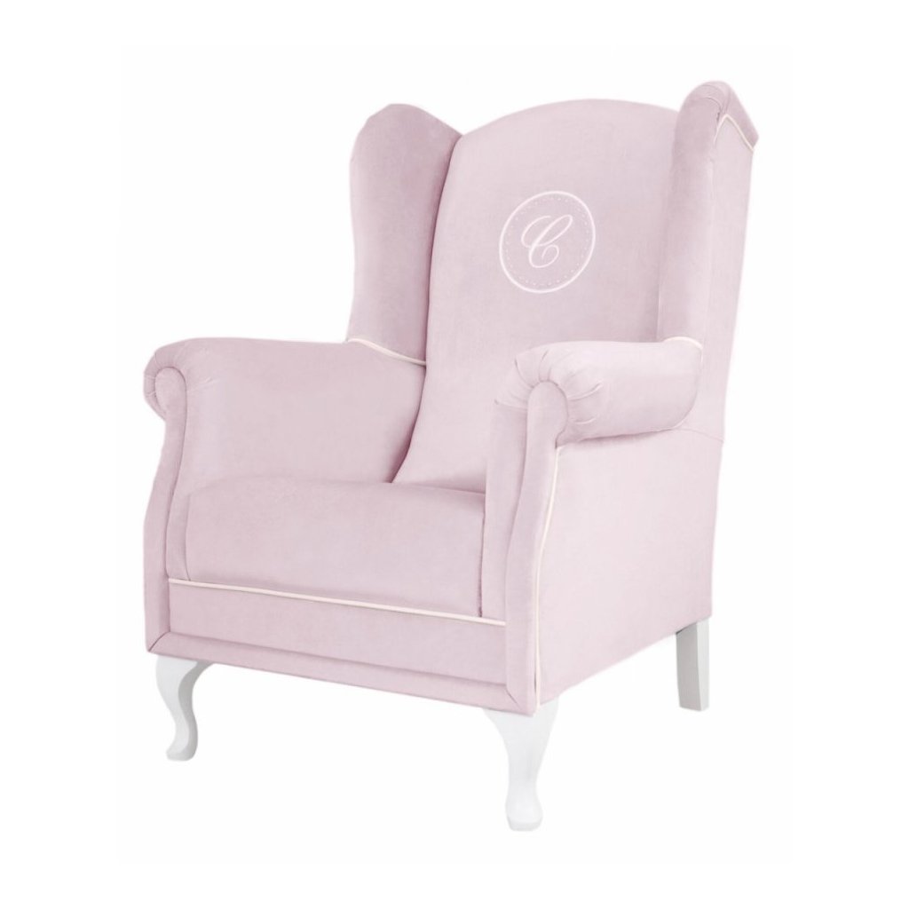 Veľké a veľmi pohodlné kreslo potiahnuté kvalitným umývateľným materiálom v ružovej farbe. Kreslo je zdobené elegantnou bielou dekoráciou a exkluzívnym znakom s písmenom „C“ v bielej farbe. Toto kreslo ocení každá dojčiaca mamička vzhľadom na vysoké opierky na hlavu a lakťové opierky. Kreslo zapadá do každého interiéru - detskej izby, obývacej izby, spálne a ďalších.