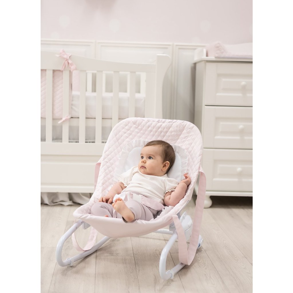 Elegantné lehátko s látkovým sedadlom z kolekcie Baby Pink. Lehátko je skvelým miestom na odpočinok vášho dieťaťa počas dňa a skvelým riešením pre deti, ktoré ešte nesedia samy.