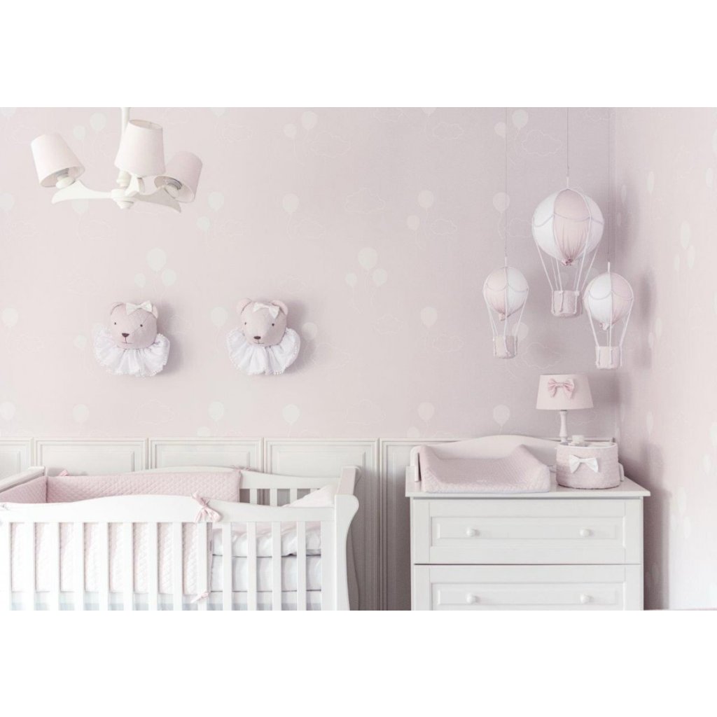 Krásny dizajn pre dievčatá. Luster je vyrobený zo svetloružového textilu. Dokonalé svetlo do každej detskej izby. Tento luster je ručne vyrábaný a medzi ramenami a hlavným prvkom sú viditeľné spojenia. Vďaka ručnej výrobe je každý luster jedinečným výrobkom a môže sa od seba líšiť.