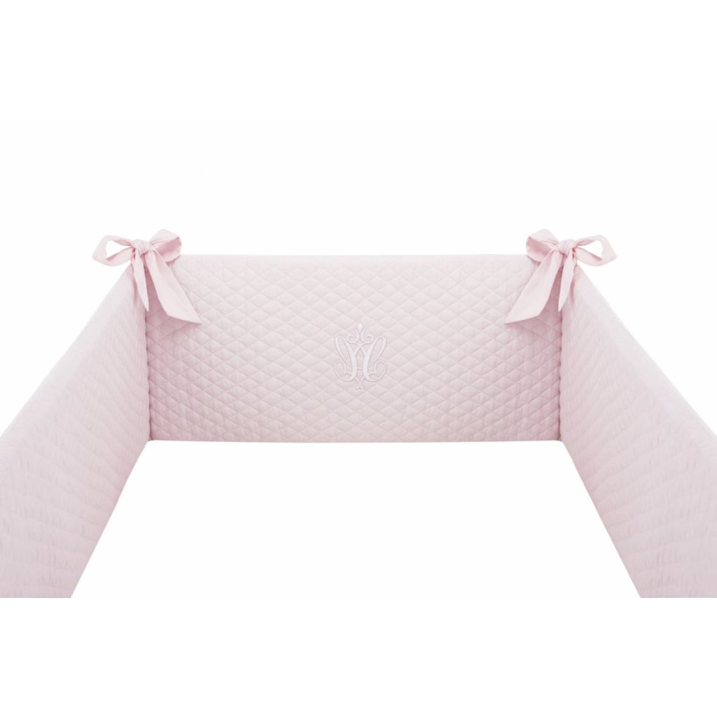 Ochranný mantinel do postieľky je vyrobený z vysoko kvalitnej prešívanej látky zdobený elegantným znakom. Vďaka výplni zo špeciálnej špongie je mantinel tuhý a dobre priľne k posteli. Krátke a široké šnúrky umožňujú jednoduché pripevnenie k priečkam. Prešívaný poťah sa zapína na zips, vďaka čomu je snímateľný. Poťah aj vnútorná výplň mantinela sú prateľné.