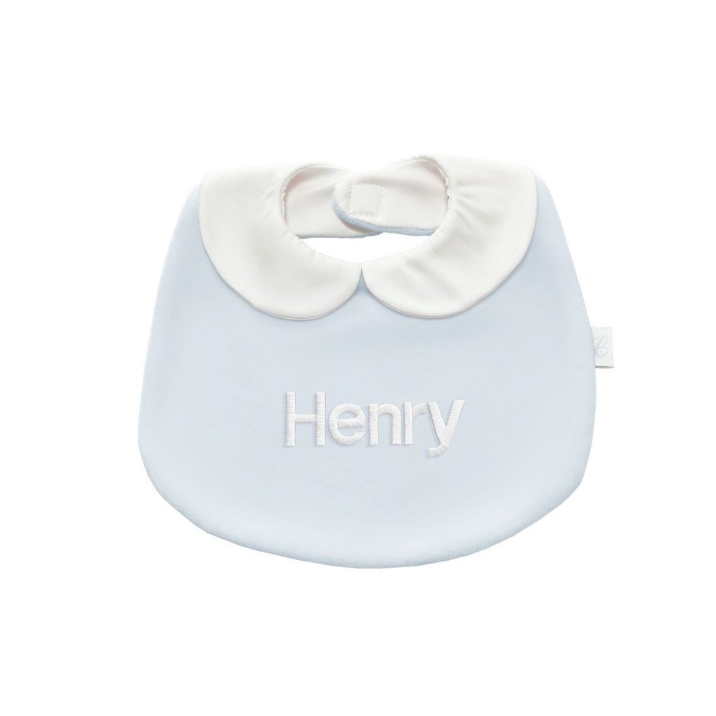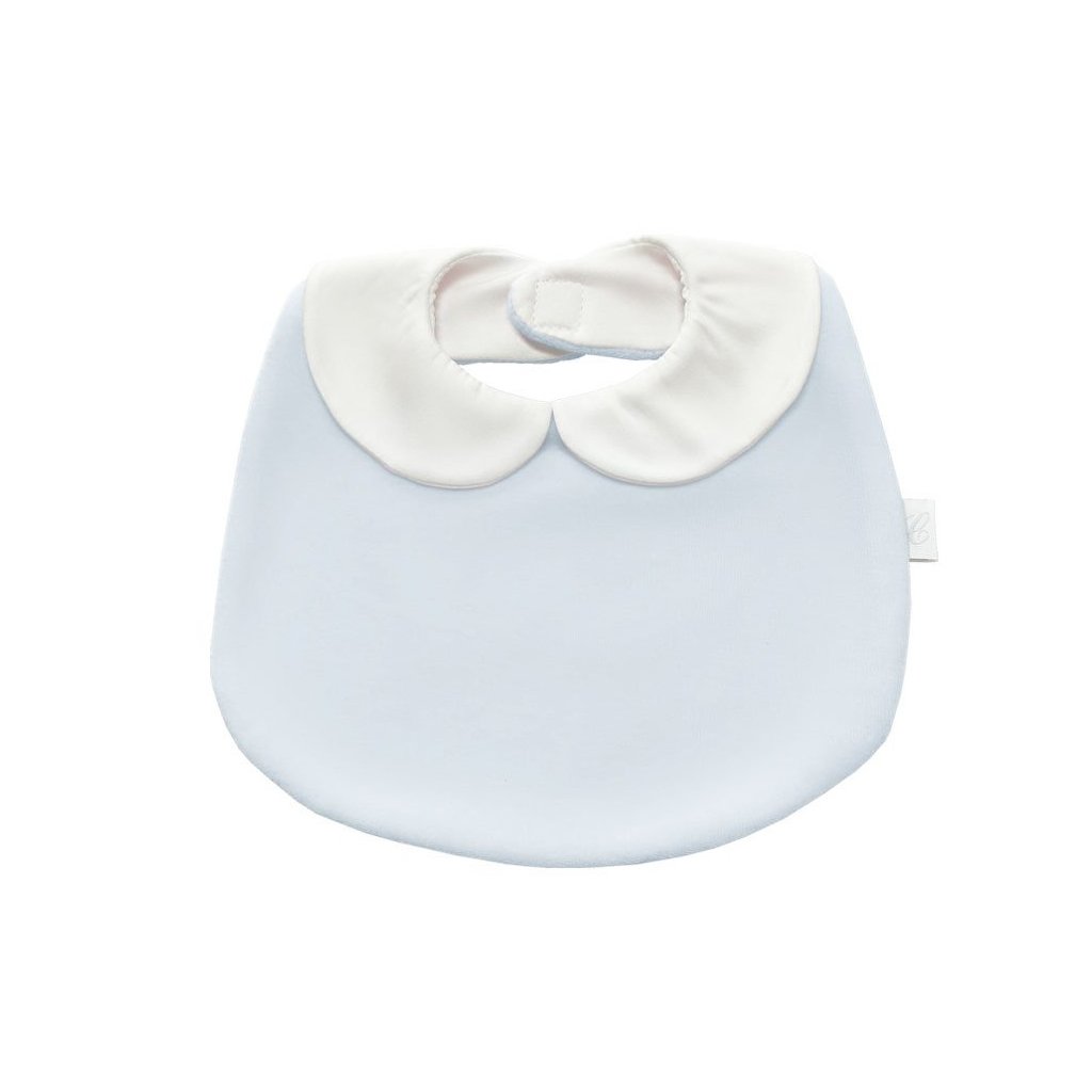Praktický detský podbradník z jemného modrého velúru, ktorý sa bude páčiť každému malému bábätku. Zapínaná poistka na suchý zips a ozdobená bebe golierom.