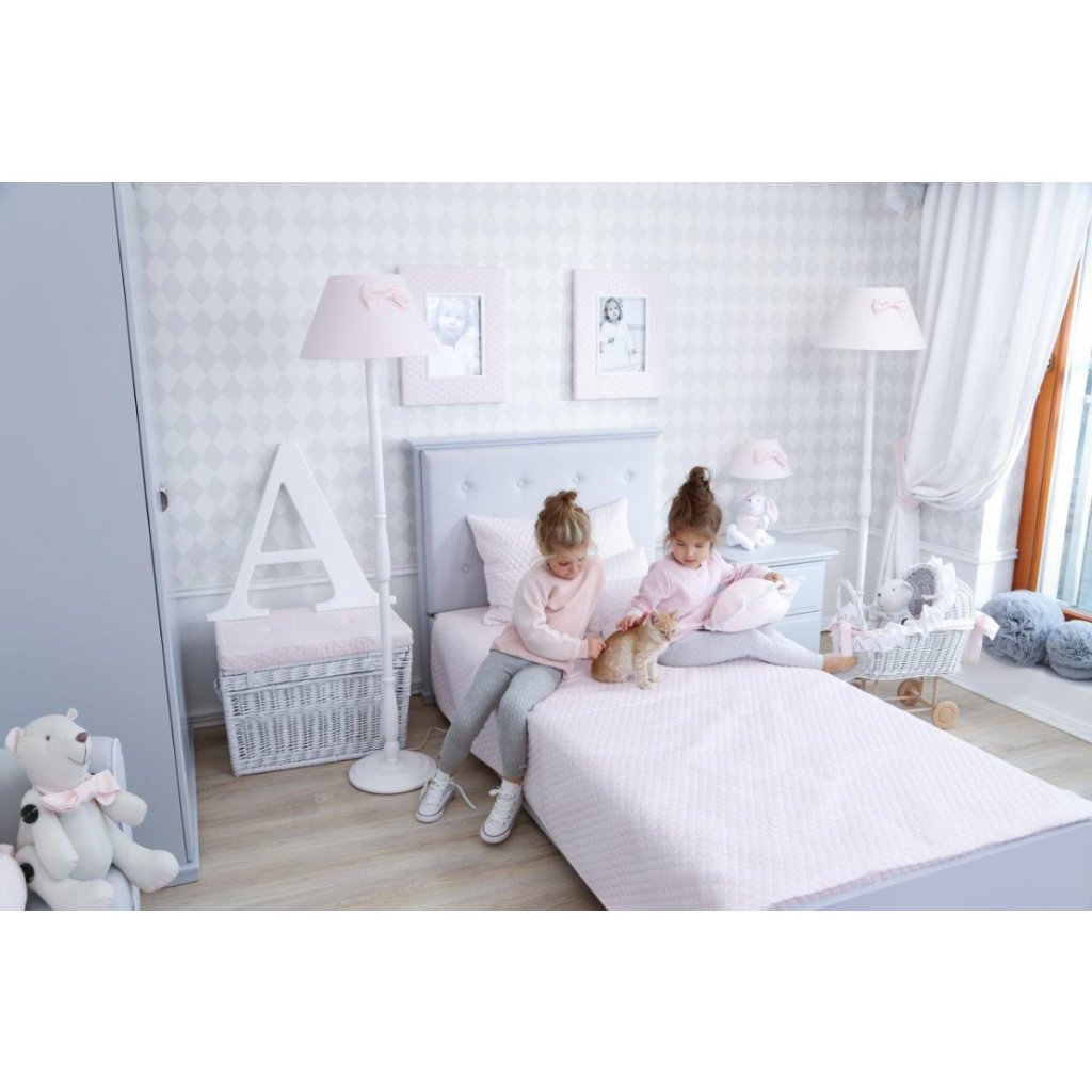 Krásny prešívaný prehoz na posteľ v jemnej ružovej farbe. Vďaka svojej tuhej štruktúre prehoz dokonale pokryje posteľ. Odporúčame si dokúpiť dekoračné vankúšiky v rovnakom dizajne a vytvoriť tak dokonale zloženú dekoračnú sadu na posteľ vášho dieťaťa.