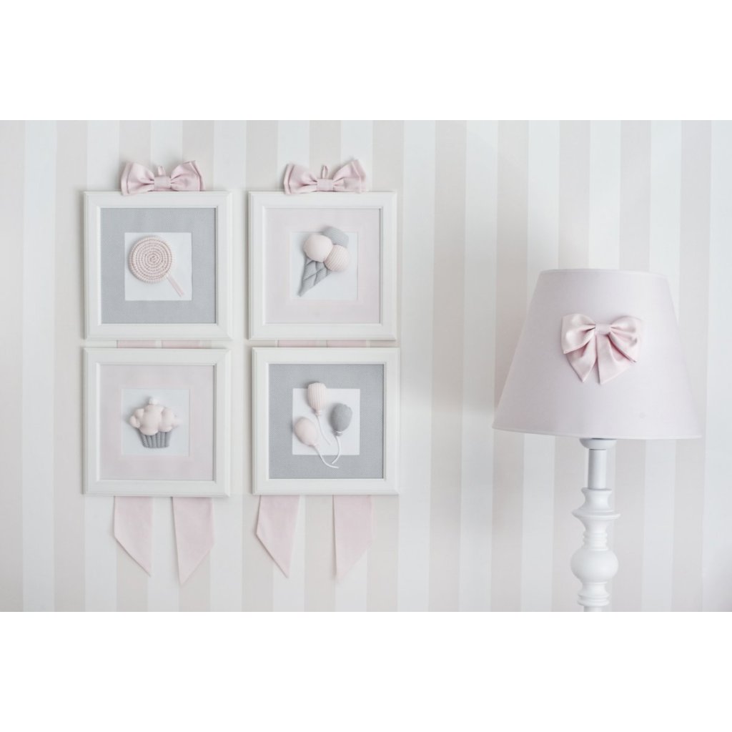Krásny dizajn pre dievčatá. Stojacia lampa so svetloružovým tienidlom a mašľou. Dokonalé svetlo do každej detskej izby. Táto lampa je ručne vyrábaná a medzi ramenami a hlavným prvkom sú viditeľné spojenia. Vďaka ručnej výrobe je každá lampa jedinečným výrobkom a môže sa od seba líšiť.