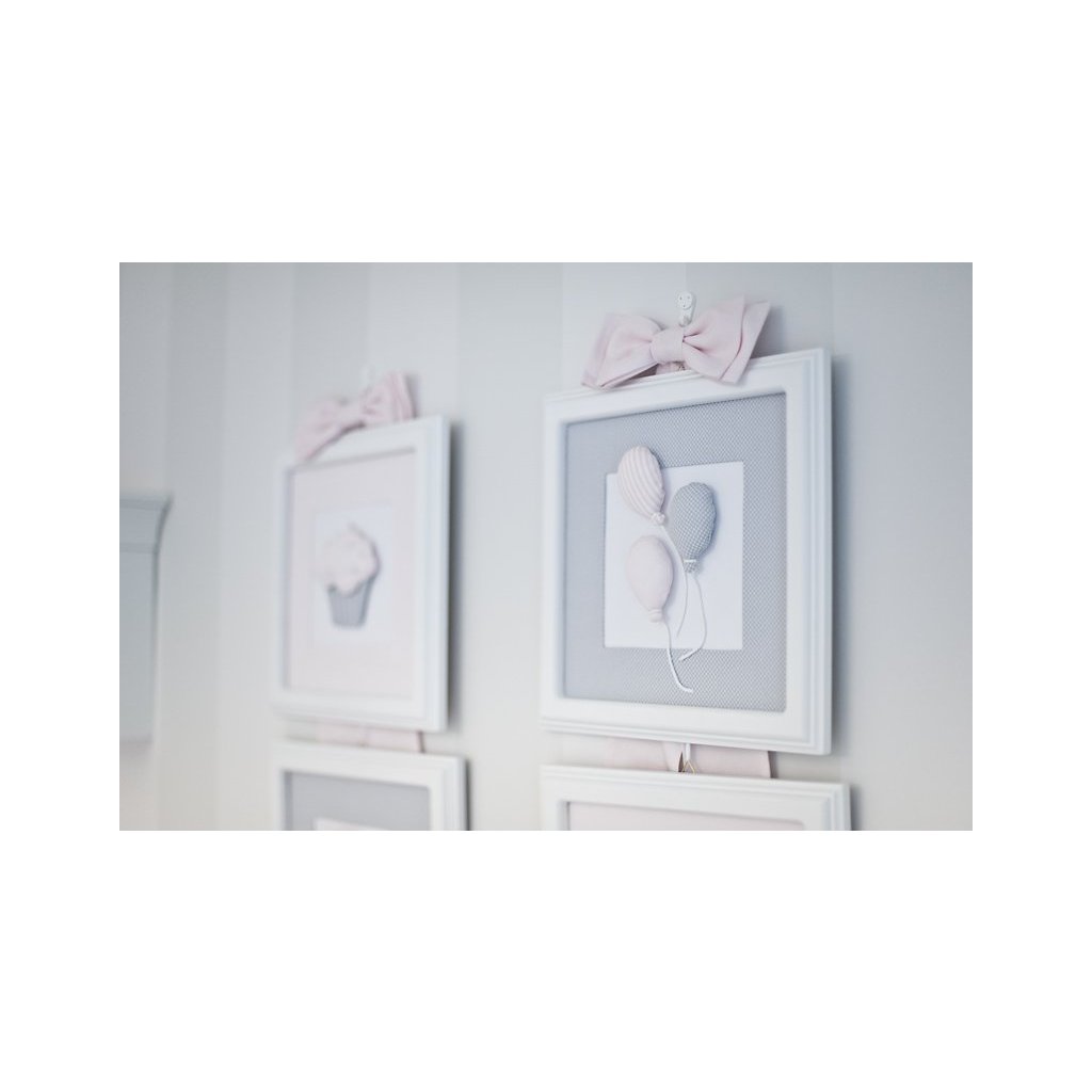 Rozkošný trojrozmerný muffin v detských ružových a sivých farbách. Vnútorná časť obrázka je vyrobená z textilu.