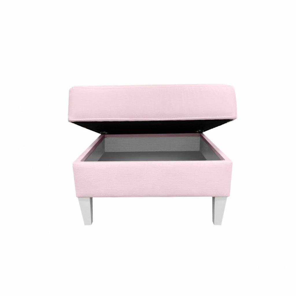 Elegantné puf kreslo vyrobené z prateľnej látky v ružovej farbe. Puf je zároveň úložným priestorom - má otváracie veko. Je to krásny kus nábytku do detskej izby, spálne alebo obývačky.