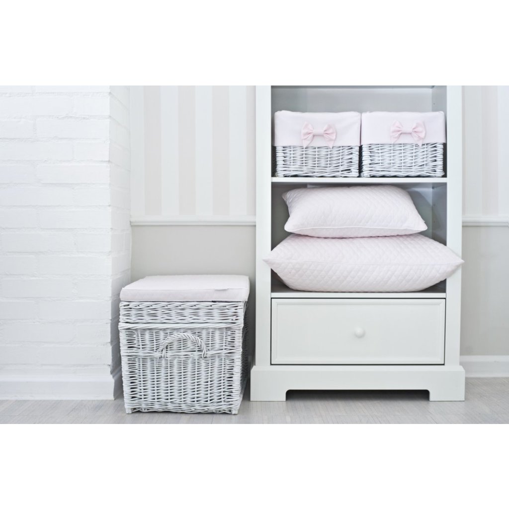 Očarujúca biela knižnica krásne zakončená ozdobným soklom a vybavená praktickou zásuvkou. Kus nábytku, ktorý je potrebný v každej detskej izbe. Priestranné police poskytujú dostatok miesta na všetky potrebné vecičky pre bábätko, hračky a iné doplnky. Odporúčame si dokúpiť praktické košíky.