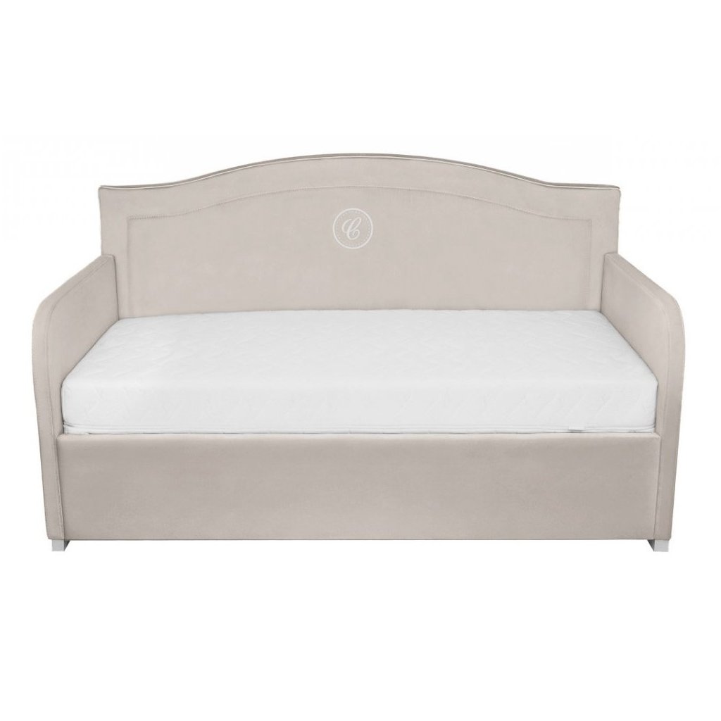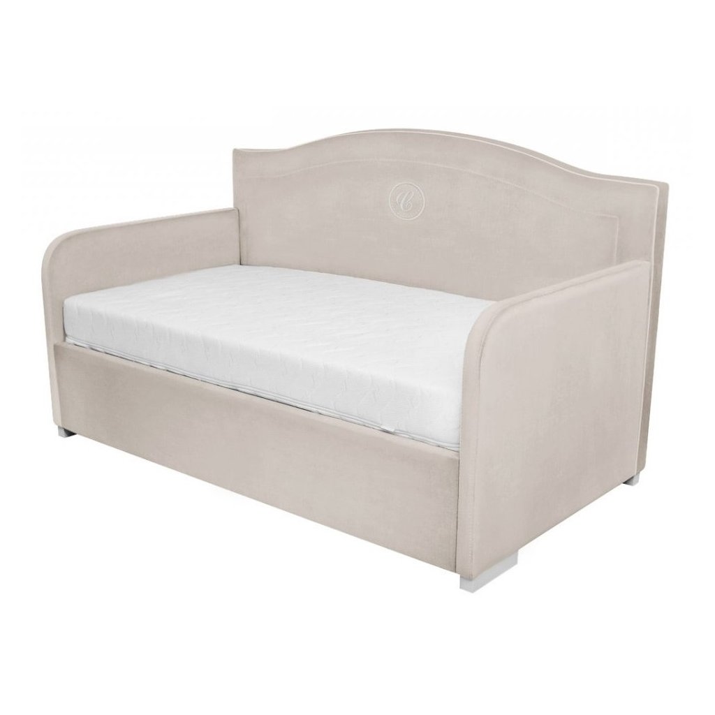 Elegantná čalúnená detská posteľ, zdobená exkluzívnou výšivkou s písmenom "C". Vyrobené z kvalitnej umývateľnej látky v béžovej farbe, vďaka ktorej je nábytok odolný voči akémukoľvek znečisteniu. Čelo postele je ukončené ozdobnou vlnkou a bielou vsadkou. Je veľmi pohodlná a jej tvar vám umožňuje použiť ju aj ako pohovku. Posteľ je možné objednať s úložným priestorom.