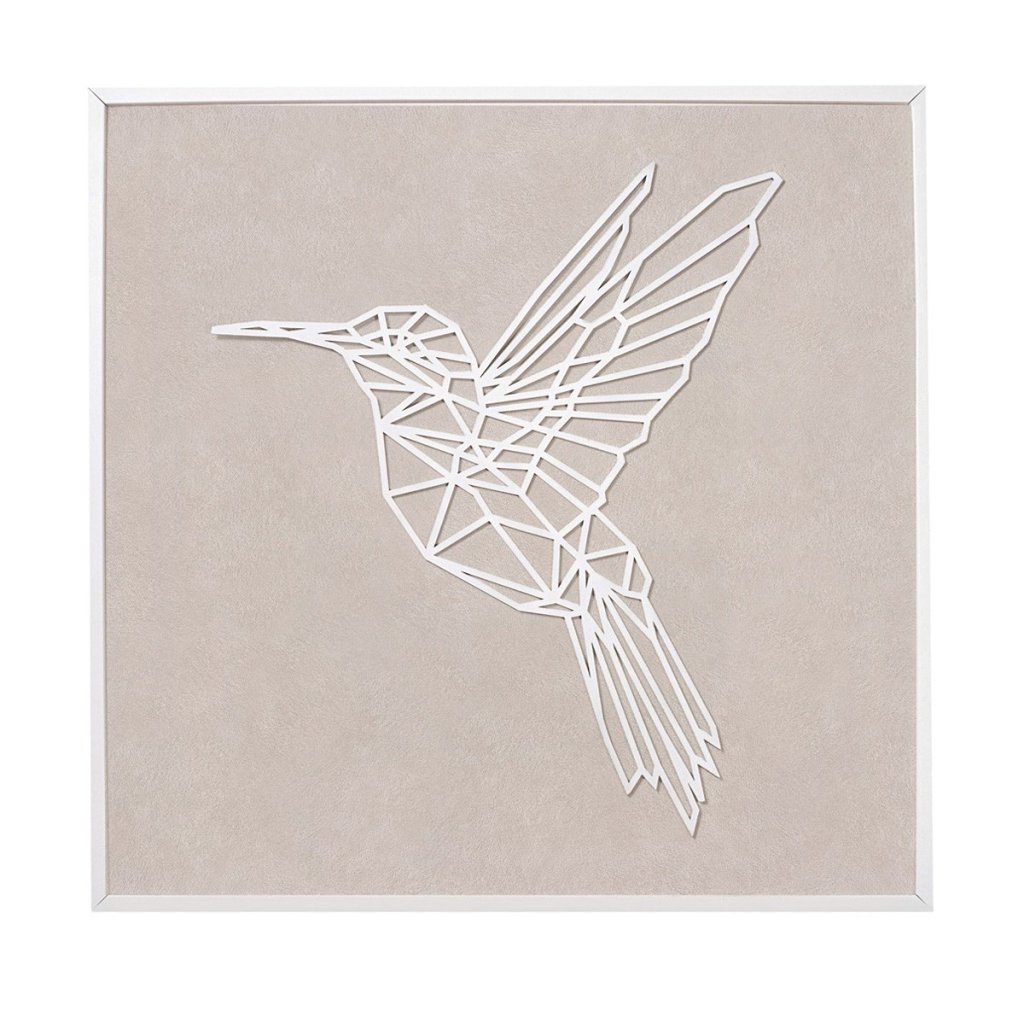 Obrazy pre deti vytvoria rozprávkovú detskú izbu. Zhmotnite ich detské sny do reálnej podoby! Obrázok v béžovej farbe so vzorom rozkošného kolibríka. Zasadené v jednoduchom, bielom, drevenom ráme. Dokonalá dekorácia do detskej izby.
