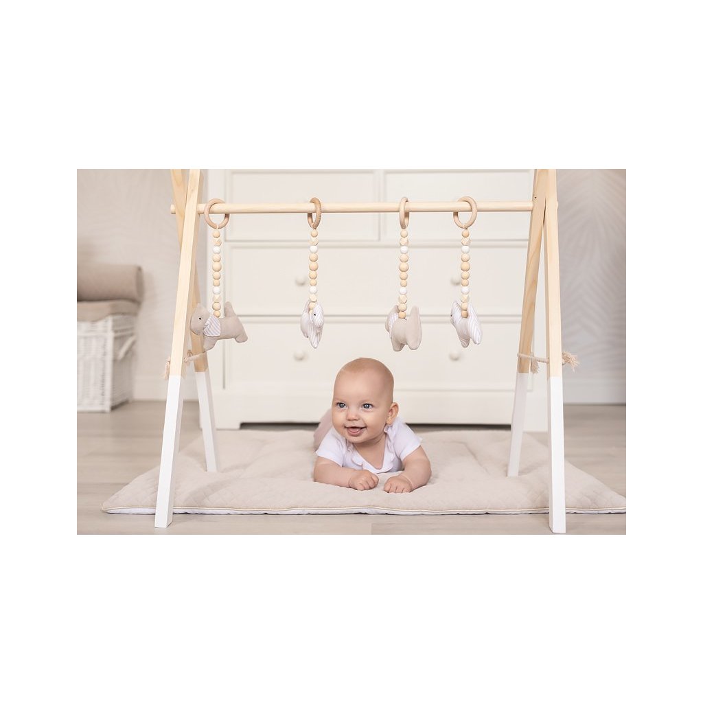 Mäkkučká podložka veľmi príjemná k detskej pokožke. Táto podložka je skvelá pre bábätká, ktoré sa učia prechádzať zozadu na bruško. Odporúčame dokúpiť si hraciu hrazdu s hračkami.