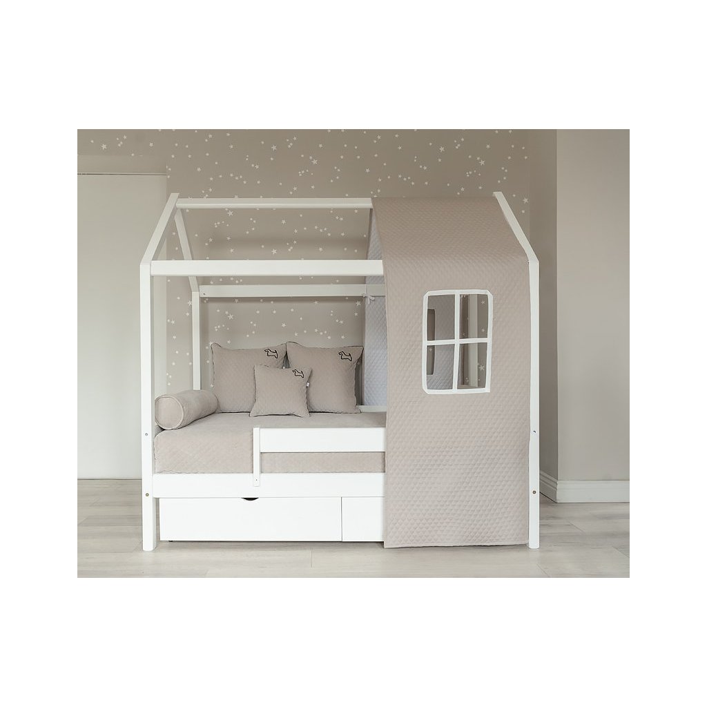 Krásny prešívaný prehoz z elegantného béžového velúru. Vďaka svojej tuhej štruktúre prehoz dokonale pokryje posteľ. Odporúčame si dokúpiť dekoračné vankúšiky v rovnakom dizajne a vytvoriť tak dokonale zloženú dekoračnú sadu na posteľ vášho dieťaťa.