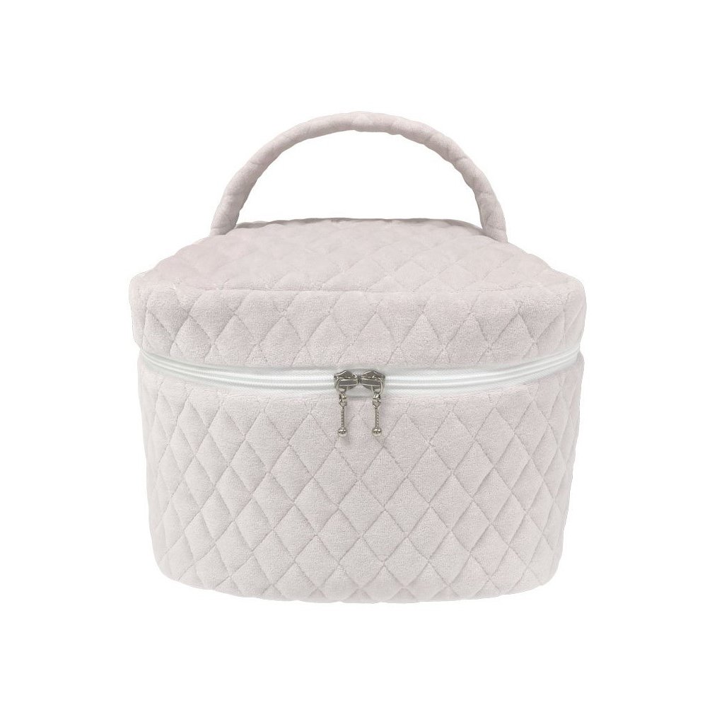 Veľký a veľmi priestranný kozmetický kufrík ideálny na prenášanie všetkých detských hygienických produktov. Je vyrobený z prešívanej bavlny v béžovej farbe a vybavený zipsom.
