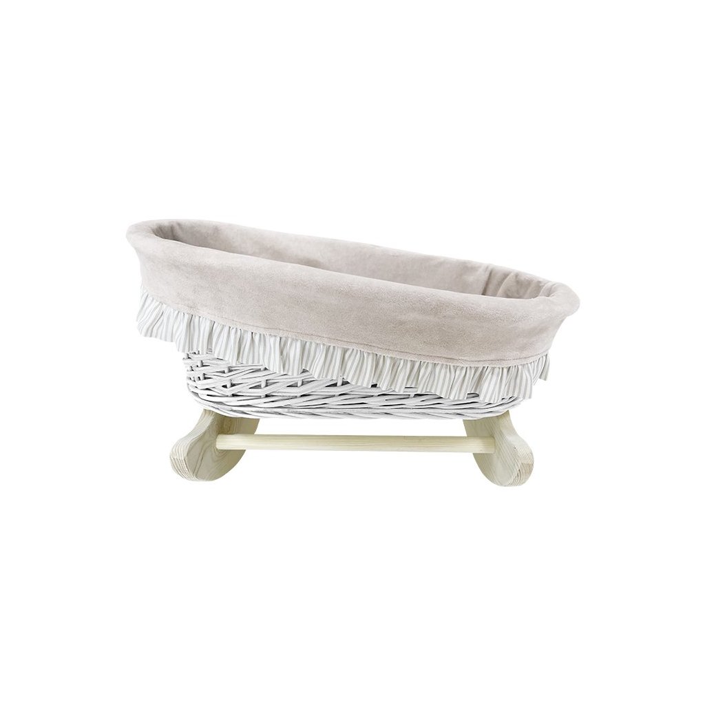 Jedinečná kolíska pre všetky malé maminky a ich bábiky. Urobte radosť dievčatkám touto originálnou kolískou. Krásna prútená kolíska s bielymi a béžovými prvkami. Je ručne vyrobená z najkvalitnejšieho prútia, lakovaného na bielo a je ozdobená bavlneným volánom a béžovou vnútornou časťou. Veľmi krásna a atraktívna hračka pre vaše dieťatko.