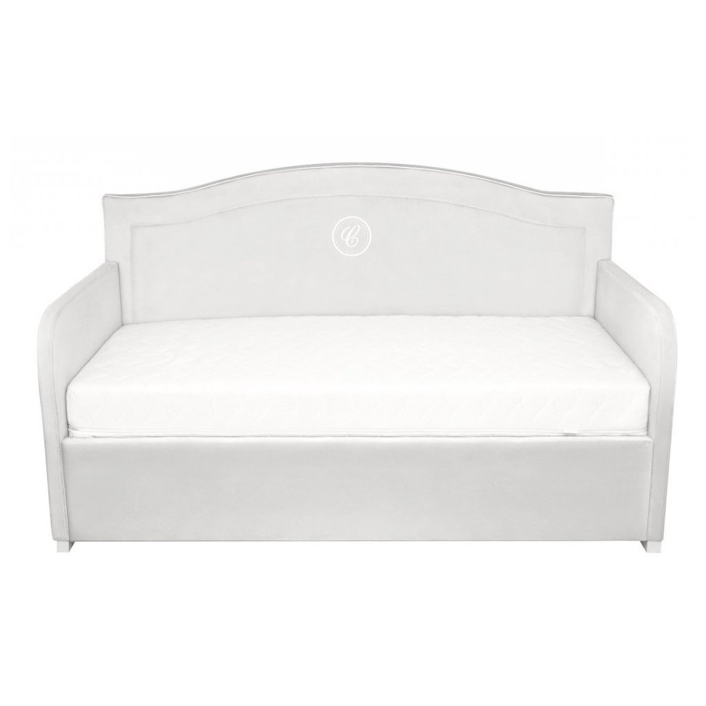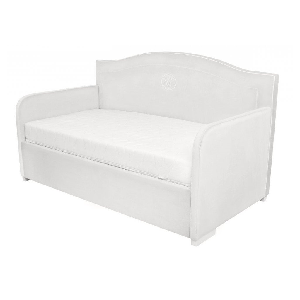 Elegantná čalúnená detská posteľ, zdobená exkluzívnou výšivkou s písmenom "C". Vyrobené z kvalitnej umývateľnej látky v slonovinovej farbe, vďaka ktorej je nábytok odolný voči akémukoľvek znečisteniu. Čelo postele je ukončené ozdobnou vlnkou a bielou vsadkou. Je veľmi pohodlná a jej tvar vám umožňuje použiť ju aj ako pohovku. Posteľ je možné objednať s úložným priestorom.