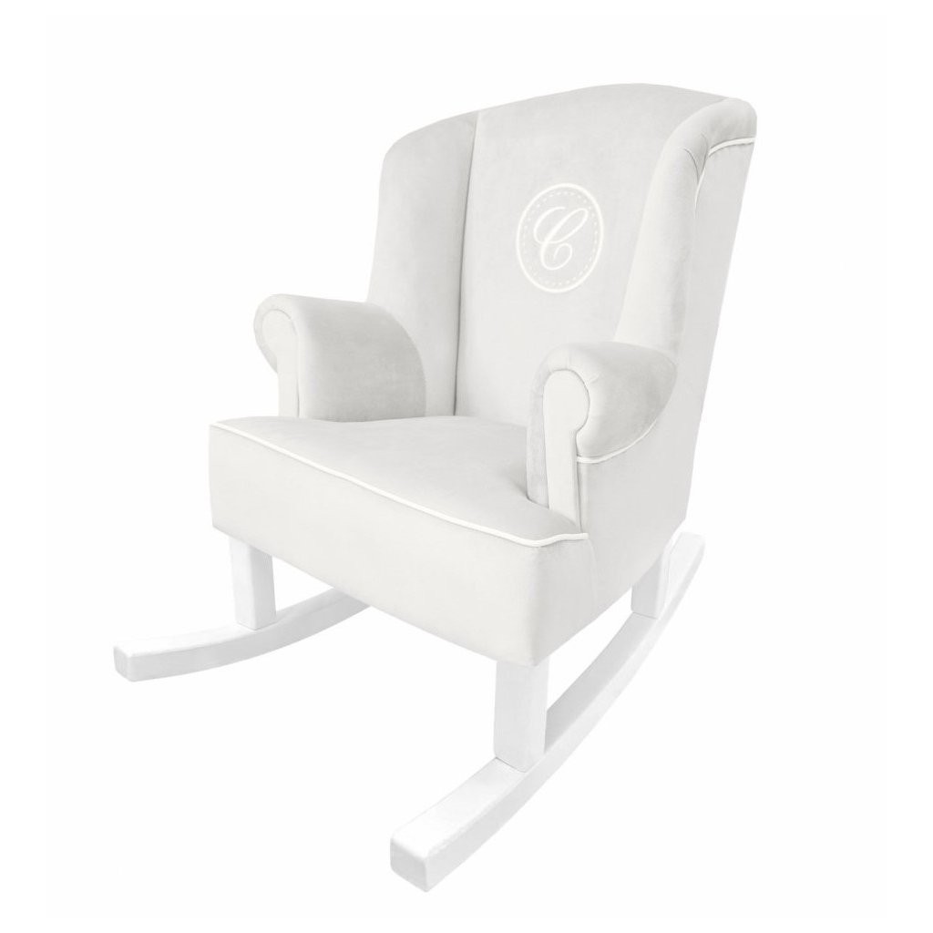 Elegantné štylizované mini hojdacie kreslo potiahnuté kvalitnou umývateľnou textíliou v nadčasovej farbe slonovej kosti. Zdobené exkluzívnym písmenom "C". Krásny klasický nábytok, ktorý obohatí každú detskú izbičku.