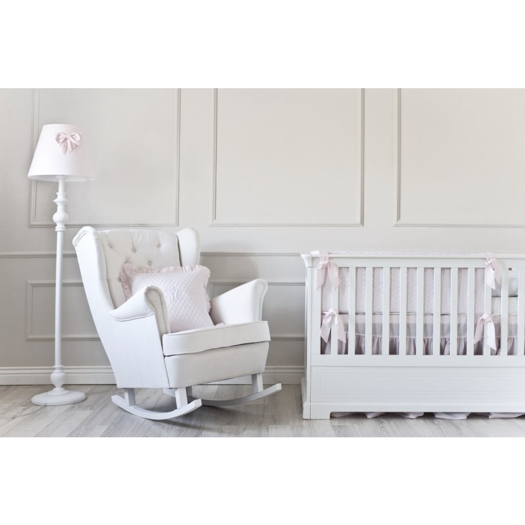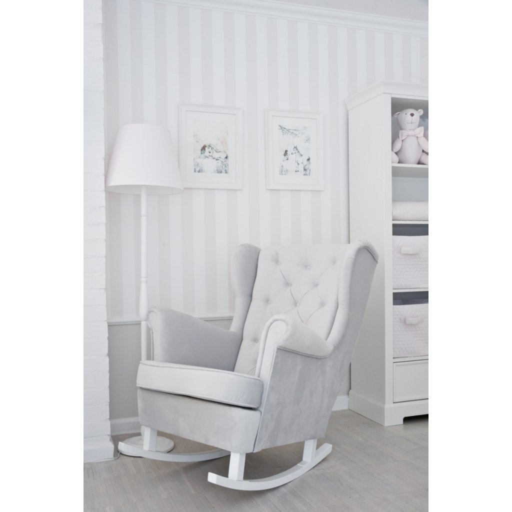 Elegantné, štylizované hojdacie kreslo potiahnuté kvalitným umývateľným textilom v slonovinovej farbe. Dostupné vo viacerých farbách: bledoružová, modrá a béžová, šedá.