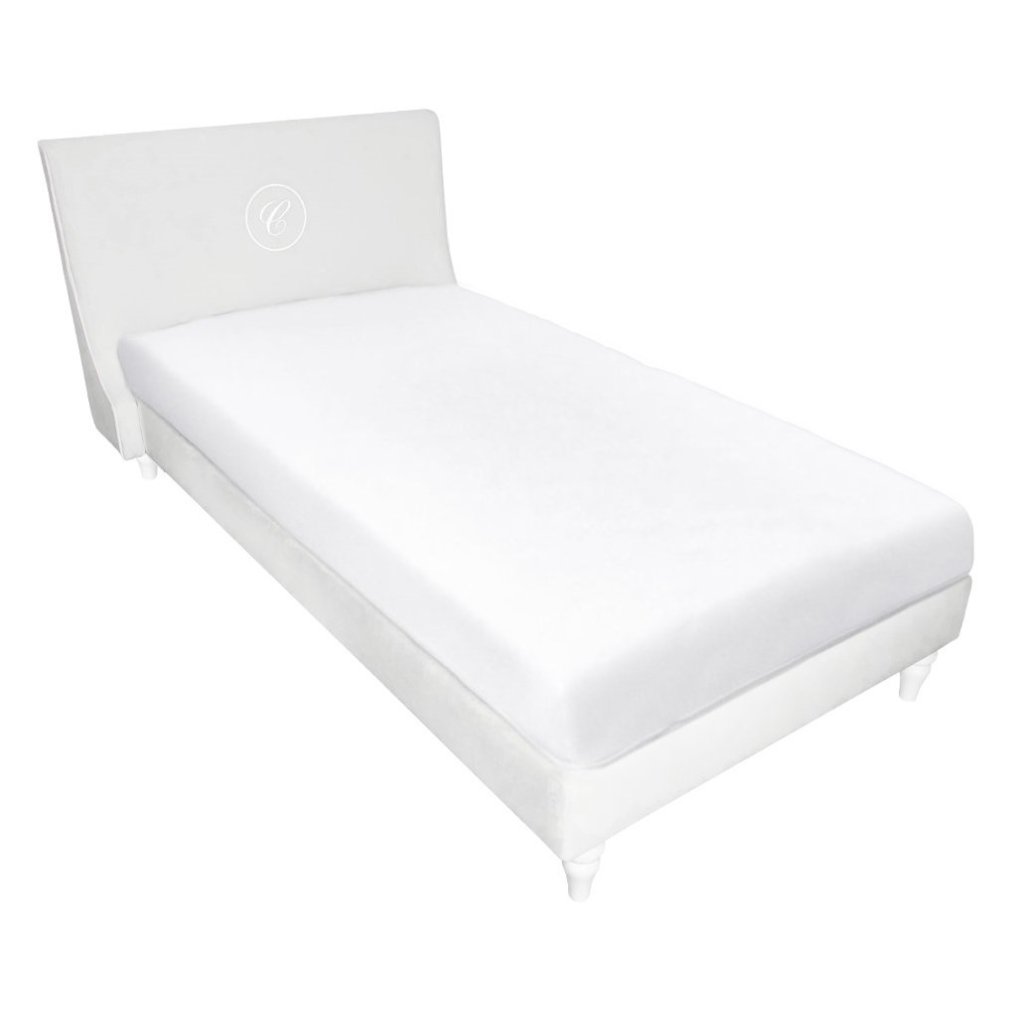 Elegantná detská posteľ s exkluzívnou výšivkou s písmenom „C“. Čelo postele a rám sú čalúnené kvalitnou umývateľnou textíliou v slonovinovej farbe, vďaka čomu je nábytok ešte funkčnejší. Čelo postele má dekoratívnu stranu a konštrukcia na nohách dodáva posteli ľahký vzhľad. Posteľ si môžete objednať v rôznych veľkostiach a farbách.