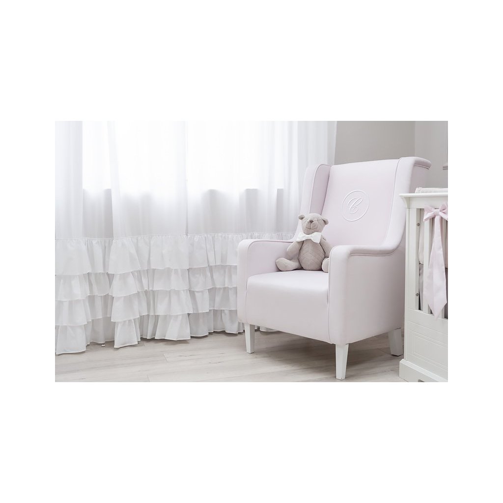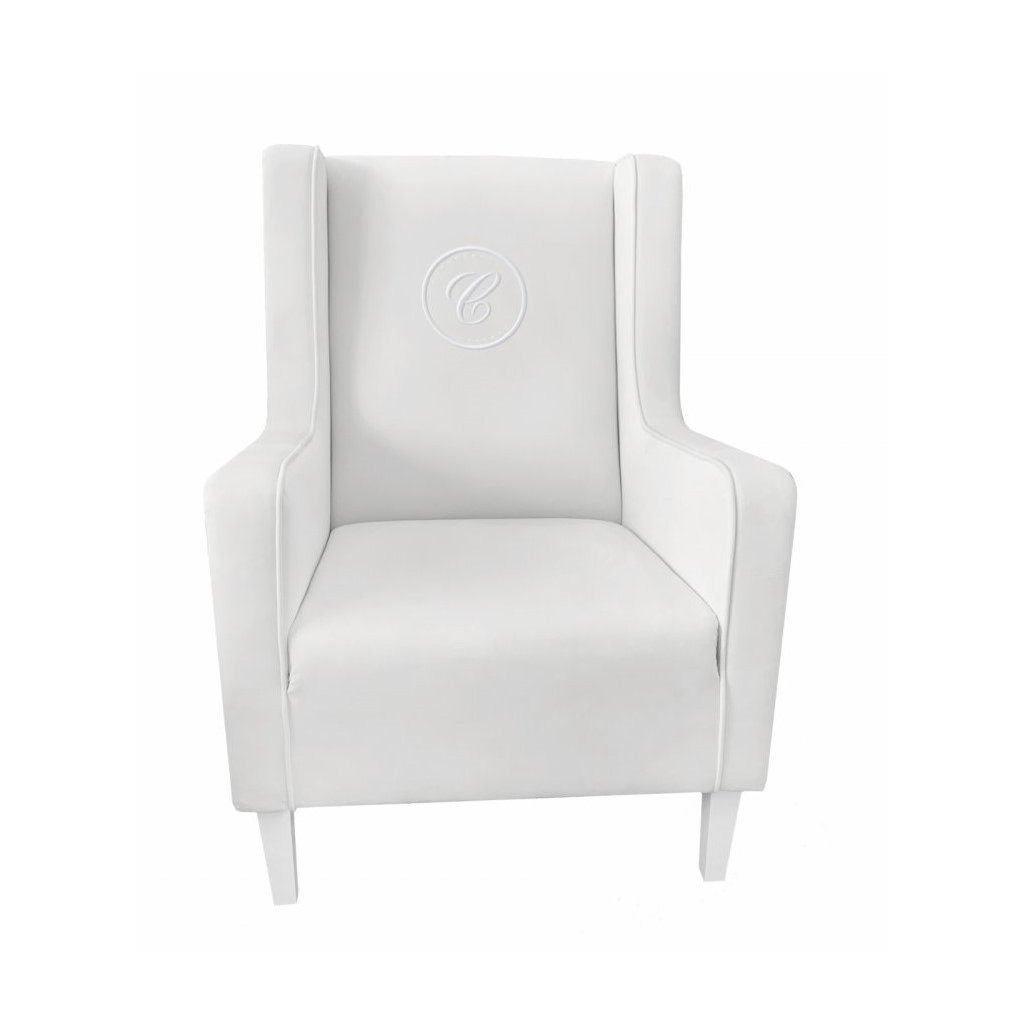 Veľké a veľmi pohodlné moderné kreslo potiahnuté kvalitným umývateľným materiálom v slonovinovej farbe. Kreslo je zdobené elegantnou bielou dekoráciou a exkluzívnym znakom s písmenom „C“ v bielej farbe. Toto kreslo ocení každá dojčiaca mamička vzhľadom na vysoké opierky na hlavu a lakťové opierky. Kreslo zapadá do každého interiéru - detskej izby, obývacej izby, spálne a ďalších.