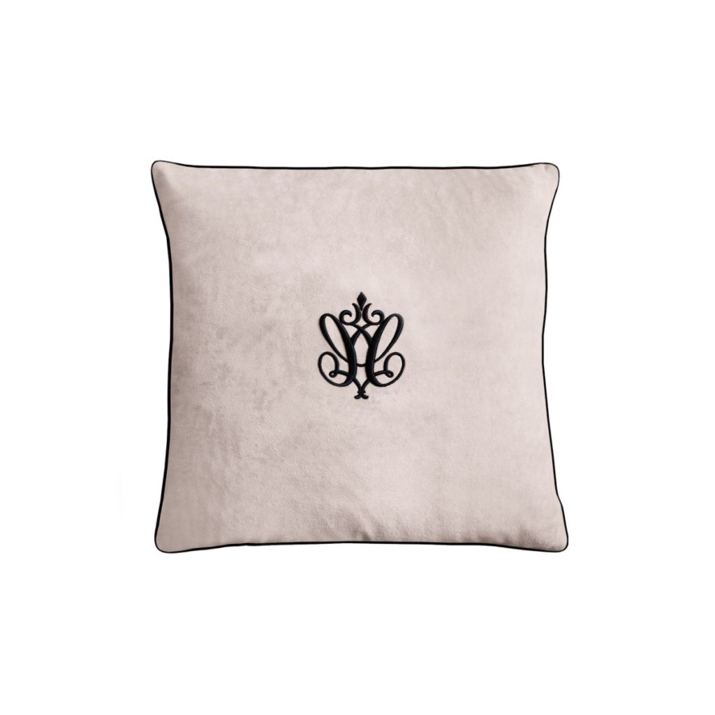 Rozkošný vankúšik z béžového velúru zdobený čiernou lemovkou a výšivkou. Súčasťou vankúšika je obliečka na vankúš s výplňou. Rozmer 50x50cm.