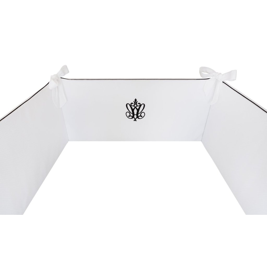 Mantinel do postieľky Modern Classic je vyrobený z kvalitnej bielej vaflovej látky a je zdobený čiernou lemovkou a výšivkou. Mantinel je vyrobený z vysoko kvalitných tkanín.