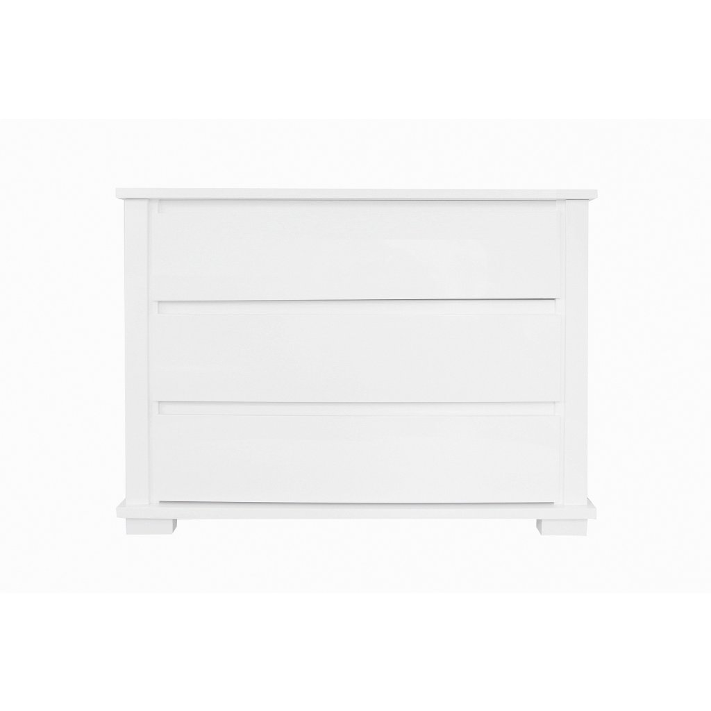 Exkluzívna moderná a priestranná komoda so zásuvkami v bielej farbe, ktorá obohatí nielen detskú izbu, ale aj spálňu alebo šatňu. Jednoduchosť formy a minimalizmus sú hlavnými črtami komody.