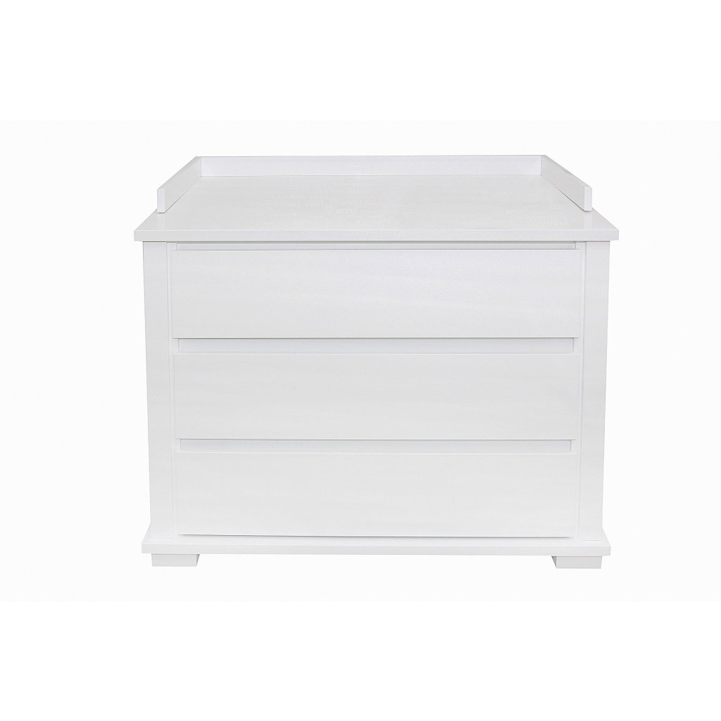 Exkluzívna moderná a priestranná komoda so zásuvkami v bielej farbe, ktorá obohatí nielen detskú izbu, ale aj spálňu alebo šatňu. Jednoduchosť formy a minimalizmus sú hlavnými črtami komody.