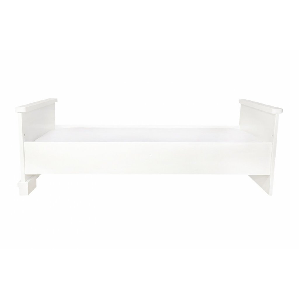 Exkluzívna detská postieľka v bielej farbe, charakteristická pre modernú kolekciu a moderný štýl. Táto postieľka bude pre vaše dieťa užitočná mnoho rokov. Na začiatku sa používa ako postieľka, neskôr sa môže zmeniť na posteľ pre staršie dieťa.