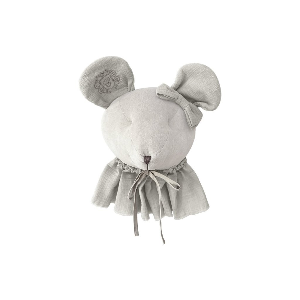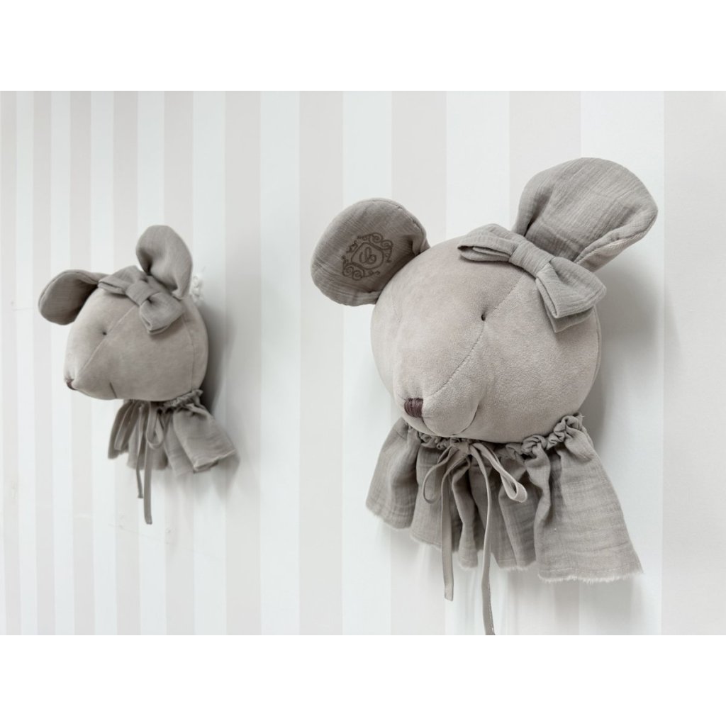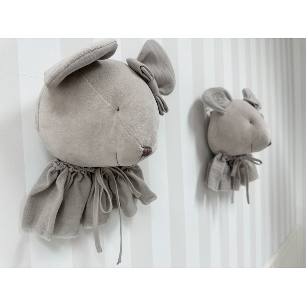 Krásna dekorácia na stenu do detskej izbičky - ručne vyrobená myšacia hlavička zdobená brmbolcom a mašličkou. Výrobok má pútka na zavesenie.
