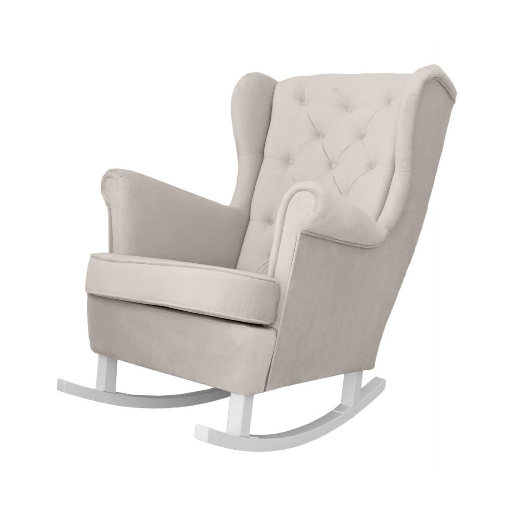 Veľké pohodlné kreslo ušatého typu vyrobené z kvalitného prateľného textilu béžovej farby. Kreslo je ideálne pre dojčiace mamičky kvôli vysokému operadlu, "uškám" pod hlavou a podrúčkam. Hojdanie bábätko upokojí a umožní mu rýchlejšie zaspať. Obohatí každý interiér - detskú izbu, obývačku a iný priestor.