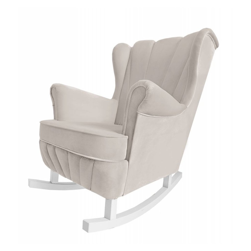 Veľké, veľmi pohodlné hojdacie kreslo. 'Ušatý' typ so širokou chrbtovou opierkou v tvare mušle. Je vyrobený z kvalitného prateľného textilu v béžovej farbe. Kreslo je ideálne pre dojčiace mamičky kvôli vysokému operadlu, "uškám" pod hlavou a podrúčkam. Hojdanie navyše bábätko upokojí a umožní mu rýchlejšie zaspať. Navyše obohatí každý interiér - detskú izbu, obývačku a iné.