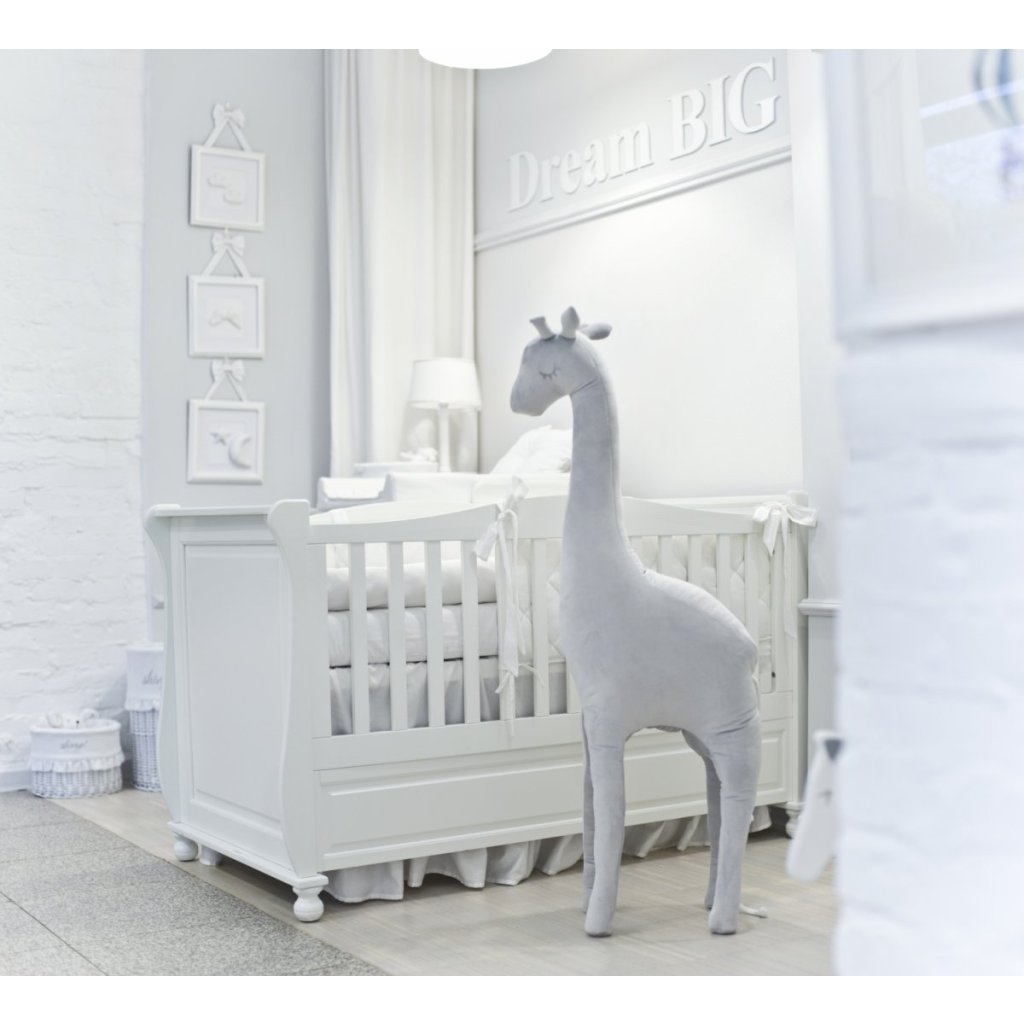 Rozkošná, ručne vyrábaná žirafa potiahnutá ľahko prateľným bledošedým textilom. Bude to najlepší priateľ vášho dieťaťa a krásna dekorácia v detskej izbičke.