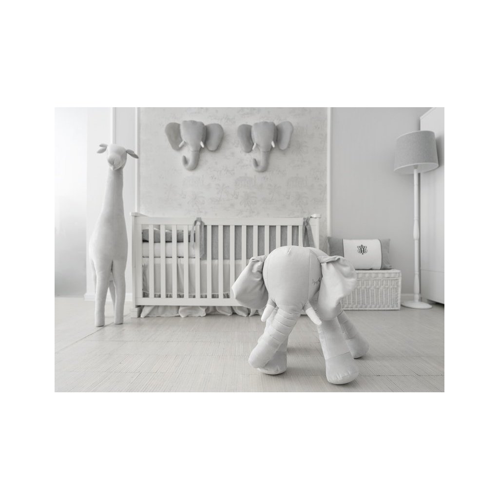 Rozkošný, ručne vyrábaný slon potiahnutý ľahko prateľným šedým textilom, umyvateľná. Bude to najlepší priateľ vášho dieťaťa a krásna dekorácia v detskej izbičke.