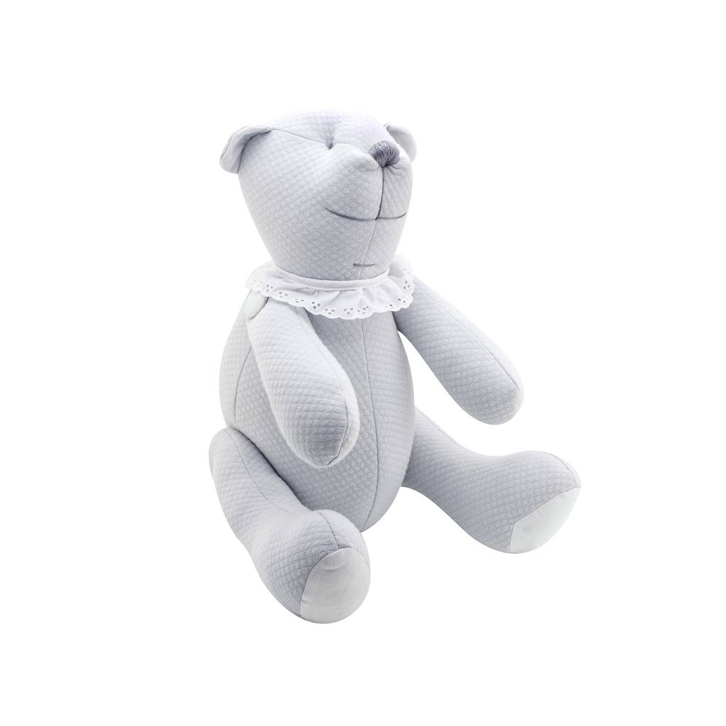 Jedinečný medvedík, ktorý vyzerá ako by bol nájdený v babičkinej krabice v podkroví. Tento bavlnený medvedík je ručne vyrobený s masívnymi gombíkmi, s pohyblivými nožičkami a rukami. Medvedík je vyrobený z kvalitnej šedej bavlnenej látky. Medvedík bude aj krásnou dekoráciou v detskej izbičke.