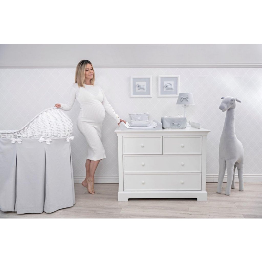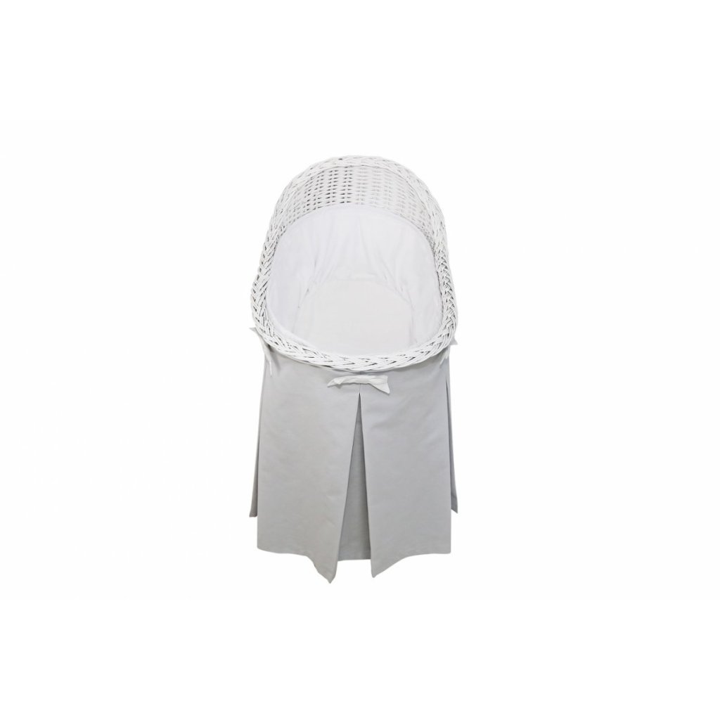 Veľmi okúzľujúci košík pre novorodenca, vyrobený z prírodného ručne tkaného prútia v bielej farbe. Košík je na kolieskach, vďaka čomu môžete košík jednoducho presúvať.