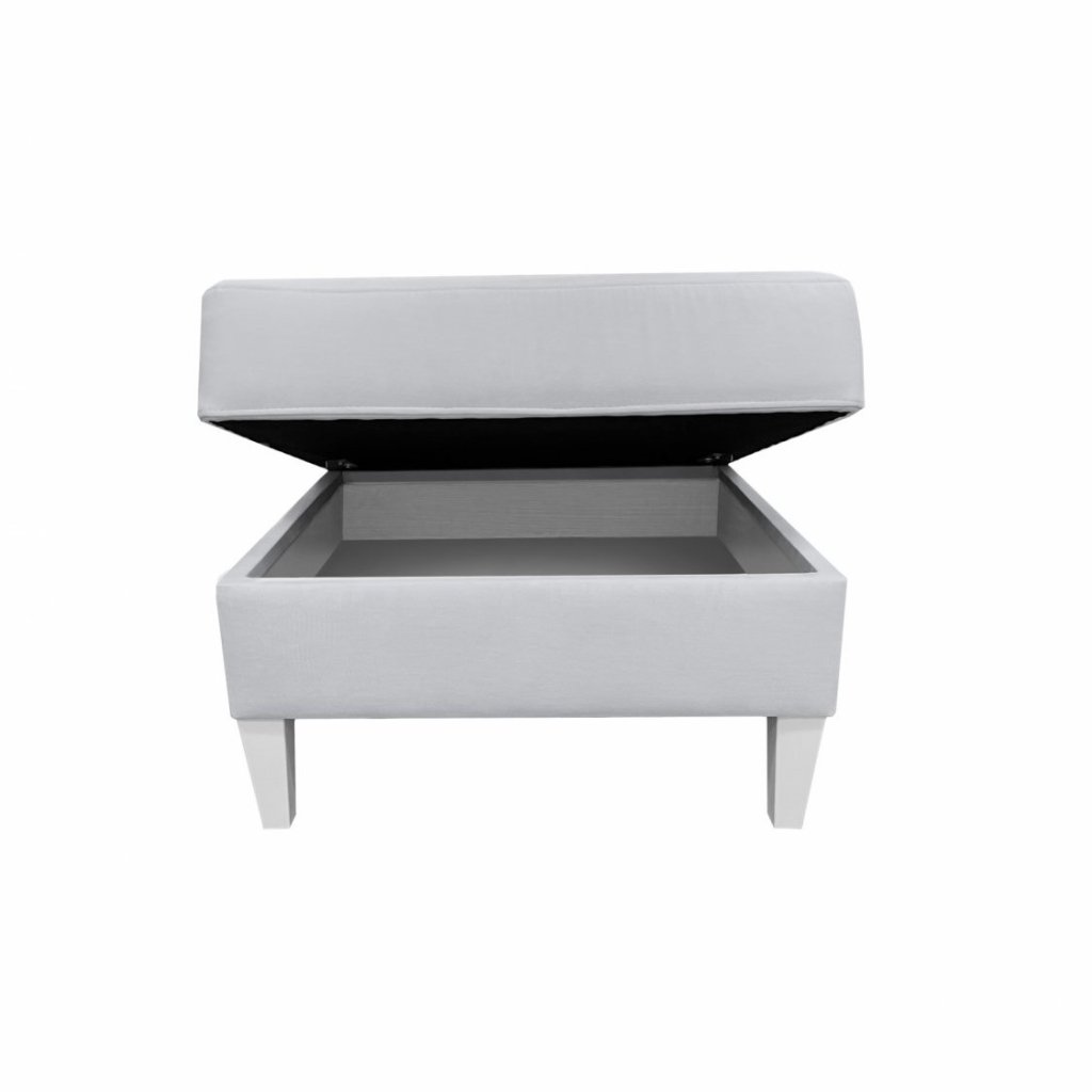 Elegantné puf kreslo vyrobené z prateľnej látky v šedej farbe. Puf je zároveň úložným priestorom - má otváracie veko. Je to krásny kus nábytku do detskej izby, spálne alebo obývačky.